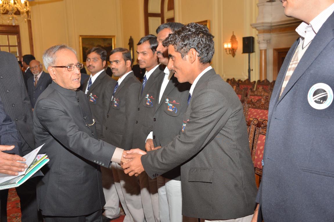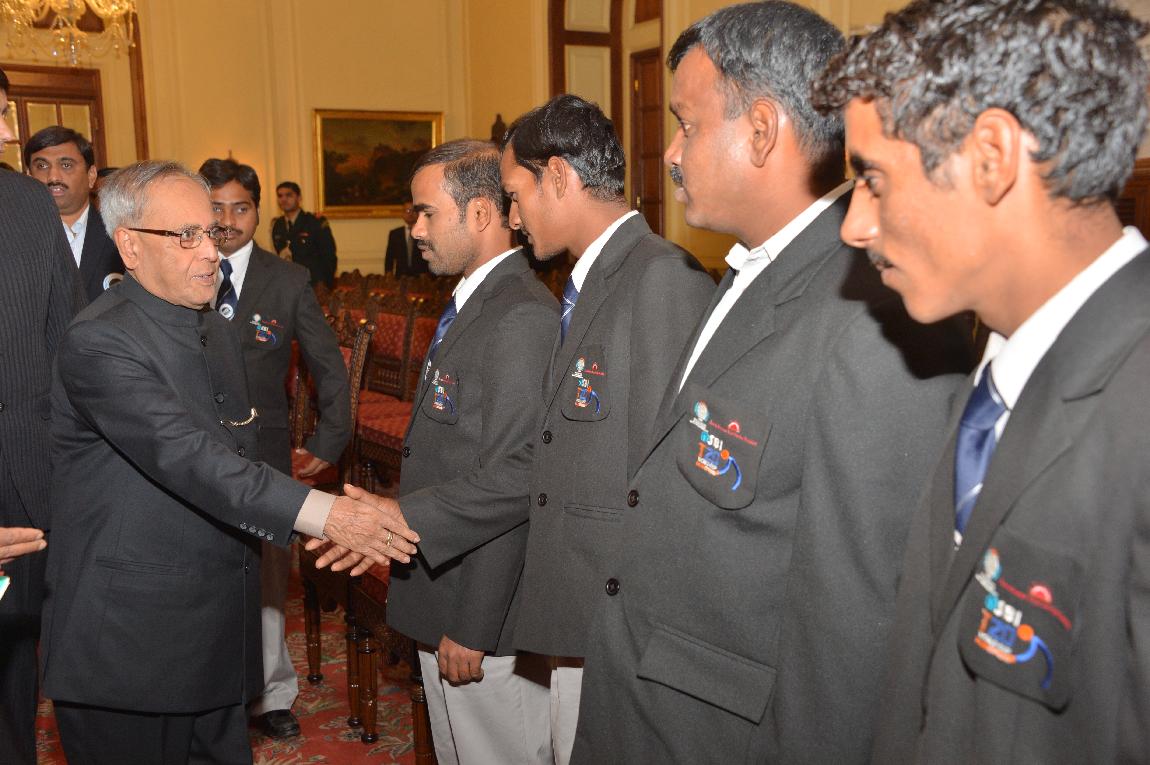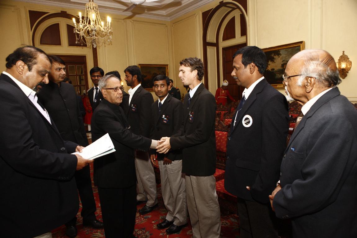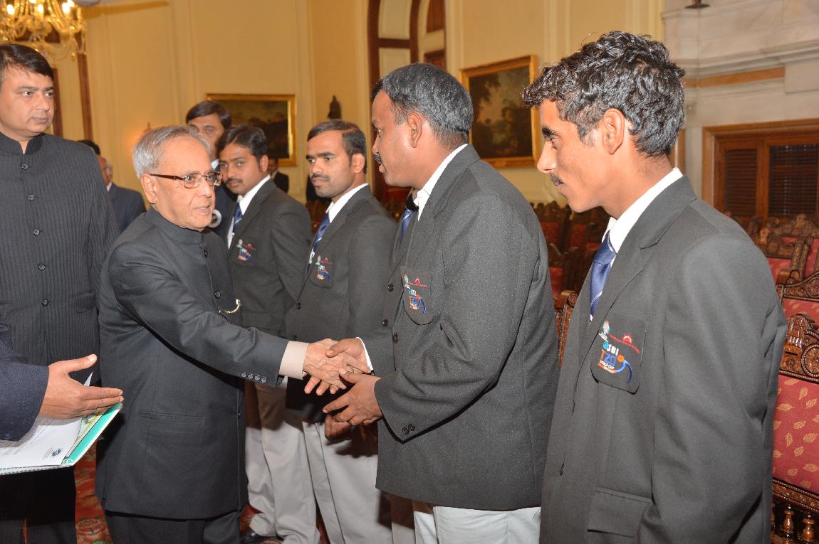 | Caption: | The President of India, Shri Pranab Mukherjee Meeting with Indian Blind Cricket Team Participated T-20 World Cup on Dec 24, 2012 |