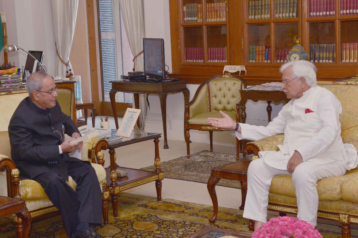 | Caption: | The President of India, Shri Pranab Mukherjee meeting with the former Union Minister, Shri K. Natwar Singh, at Rashtrapati Bhavan, in New Delhi on September 24, 2015. |