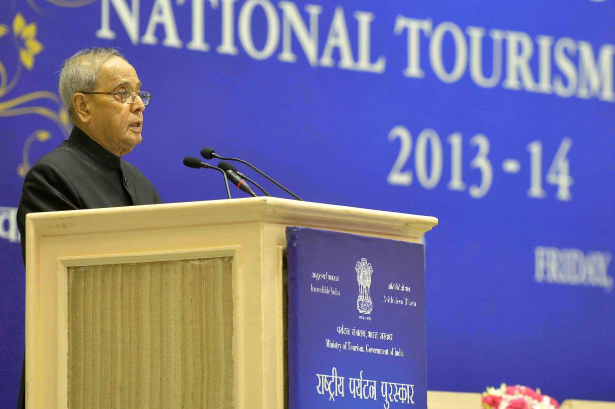 | Caption: | The President of India, Shri Pranab Mukherjee presenting the National Tourism Awards, at Vigyan Bhavan, in New Delhi on September 18, 2015. |