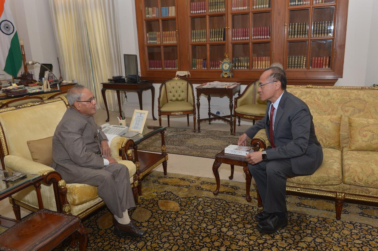 | Caption: | The President of India, Shri Pranab Mukherjee meeting with Mr. George Yeo, Chancellor, Nalanda University, at Rashtrapati Bhavan, in New Delhi on September 04, 2015. |