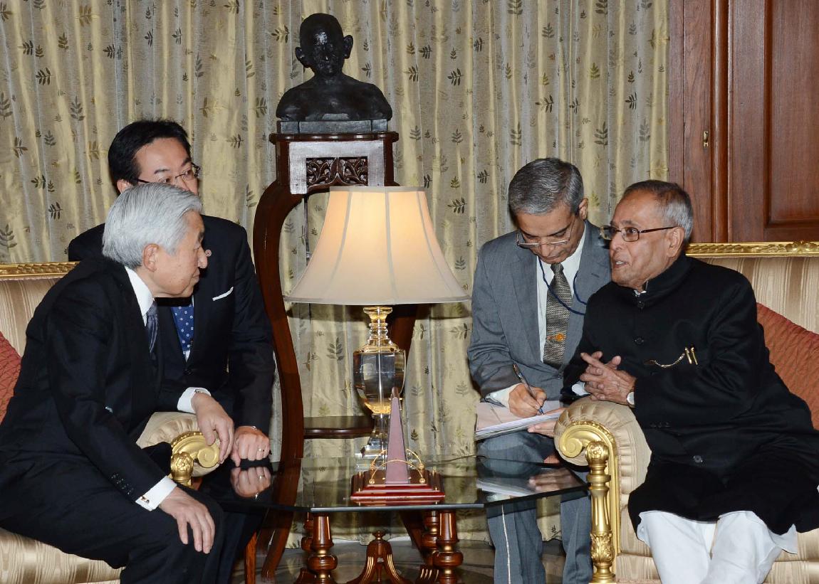 | Caption: | The Emperor of Japan, His Majesty Akihito calling on the President of India, Shri Pranab Mukherjee at Rashtrapati Bhavan in New Delhi on Dec 02, 2013 |