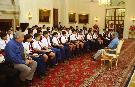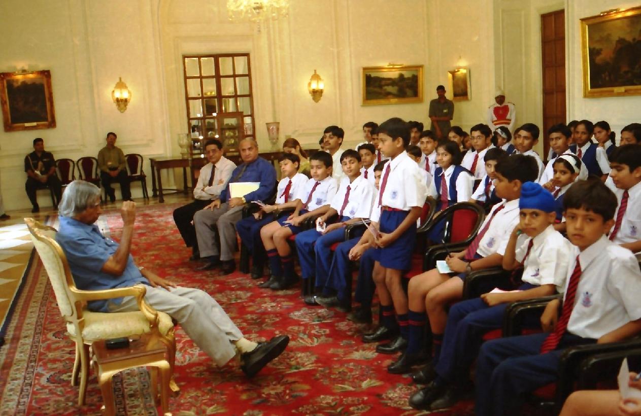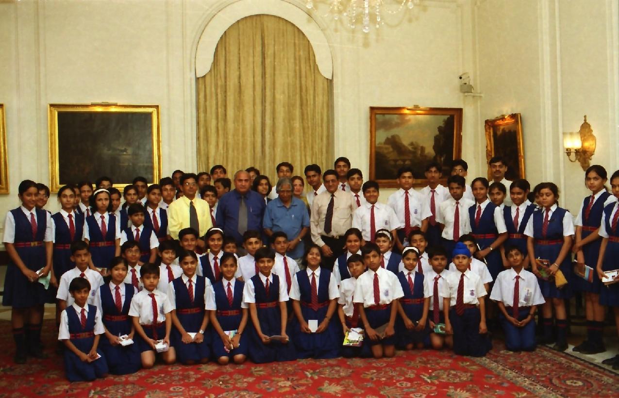 | Caption: | The Students from JP Academy Meerut calling on the President of India, Dr A P J Abdul Kalam at the Yellow Drawing Room of Rashtrapati Bhavan in New Delhi on July 11, 2003 |