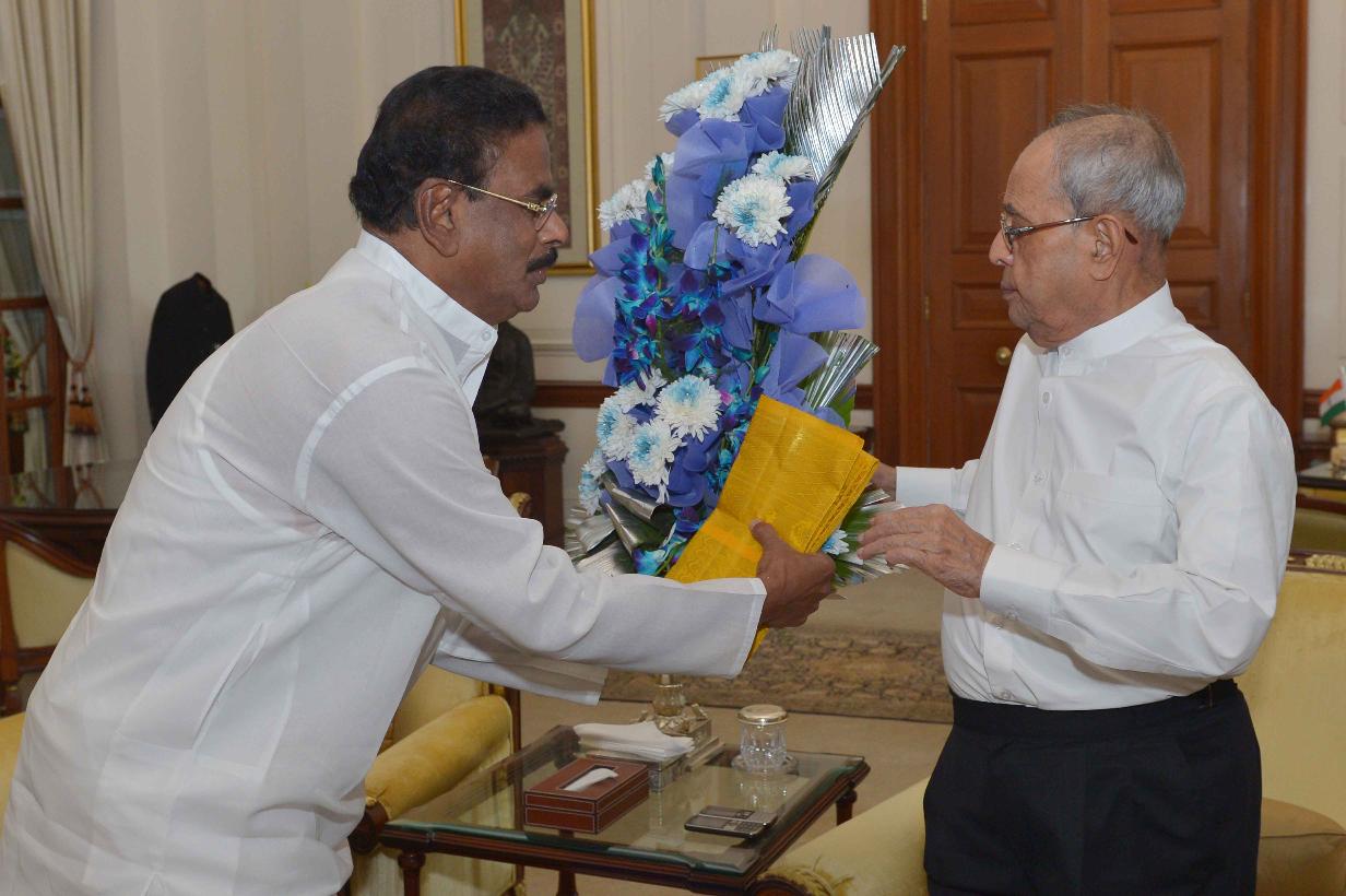 | Caption: | The President of India, Shri Pranab Mukherjee meeting with Shri Krishnamohan Ghosh, at Rashtrapati Bhavan, in New Delhi on October 08, 2015. |