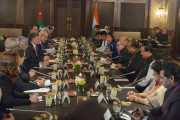| Caption: | The President of India, Shri Pranab Mukherjee at the delegation level talks with the HM King Abdullah of Jordan, at Al Husseinieh Palace, Amman, in Jordan on October 10, 2015. |