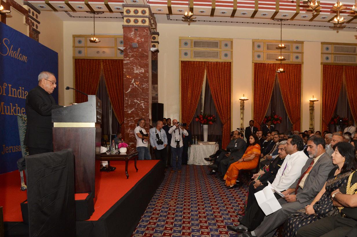 | Caption: | The President of India, Shri Pranab Mukherjee addressing the Indian Nationals and Israeli Nationals of Indian origin, at a reception hosted by Shri Jaideep Sarkar, Ambassador of India to Israel, in Jerusalem on October 13, 2015. |