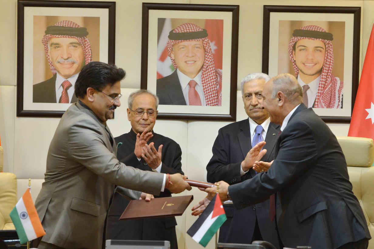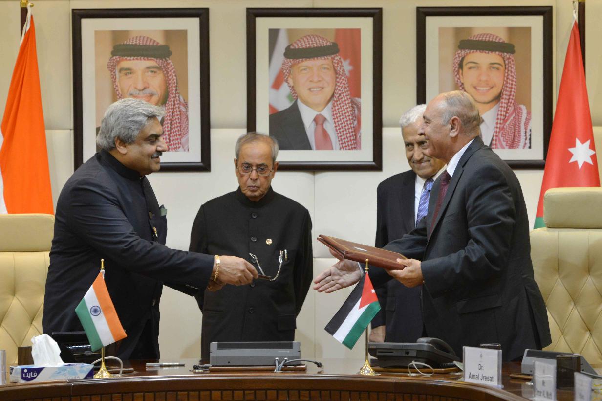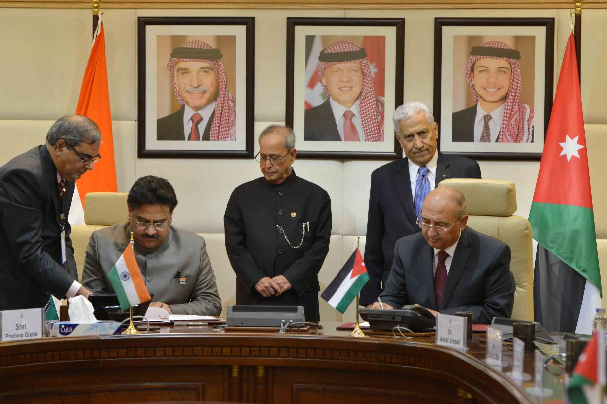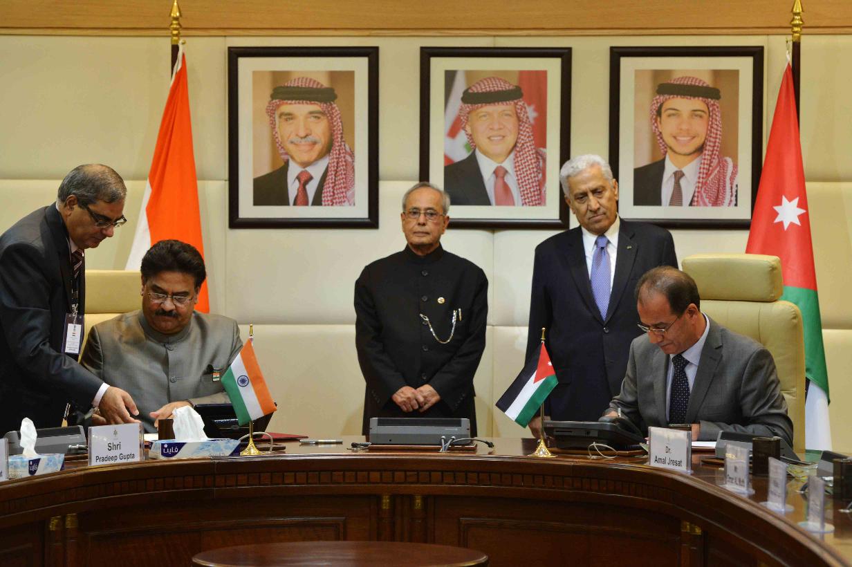 | Caption: | The President of India, Shri Pranab Mukherjee and the Prime Minister of Jordan, H.E. Dr. Abdullah Ensour, witnessing signing of various MoUs, at Government Office Complex, at Amman in Jordan on October 11, 2015. |