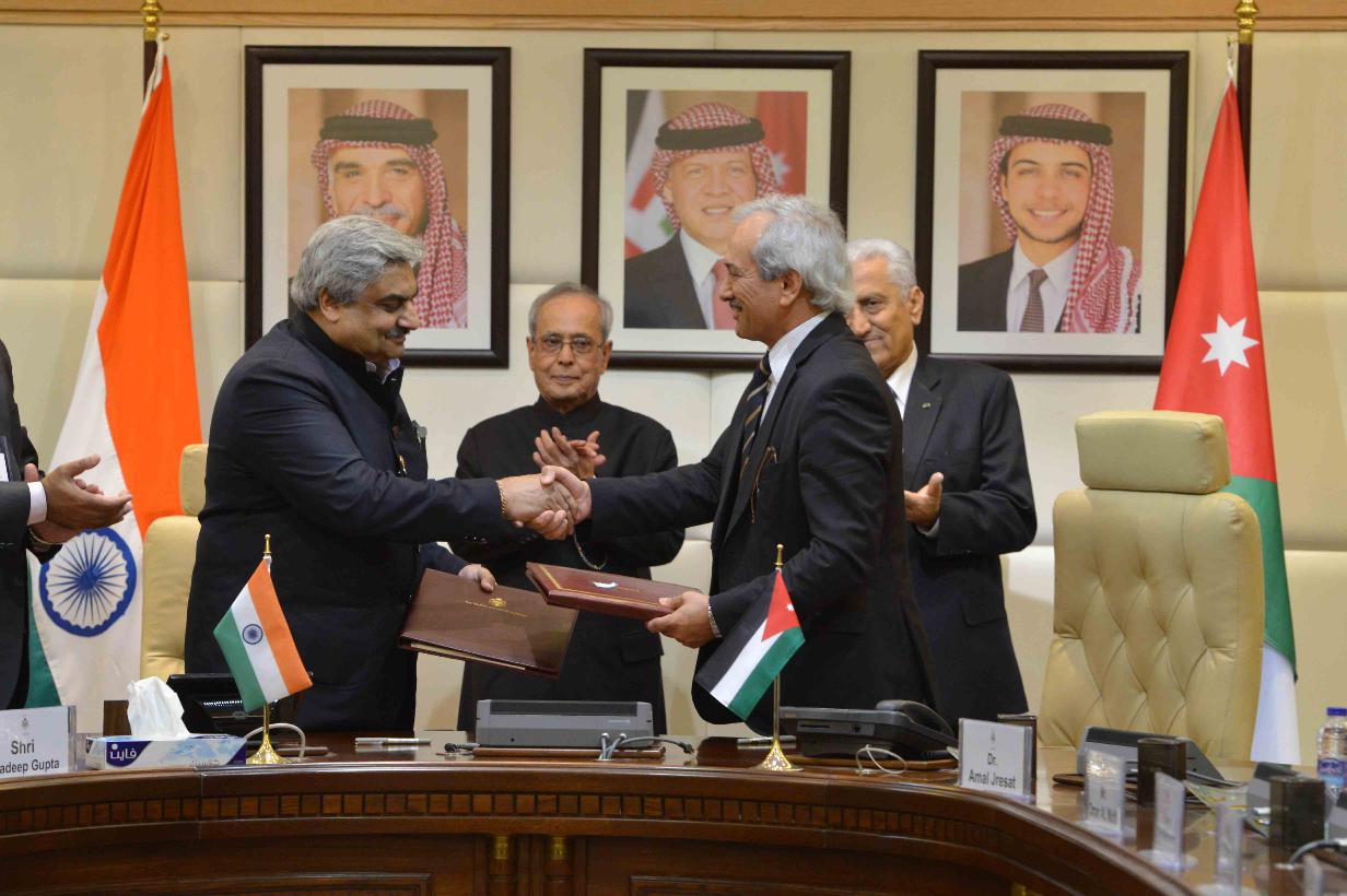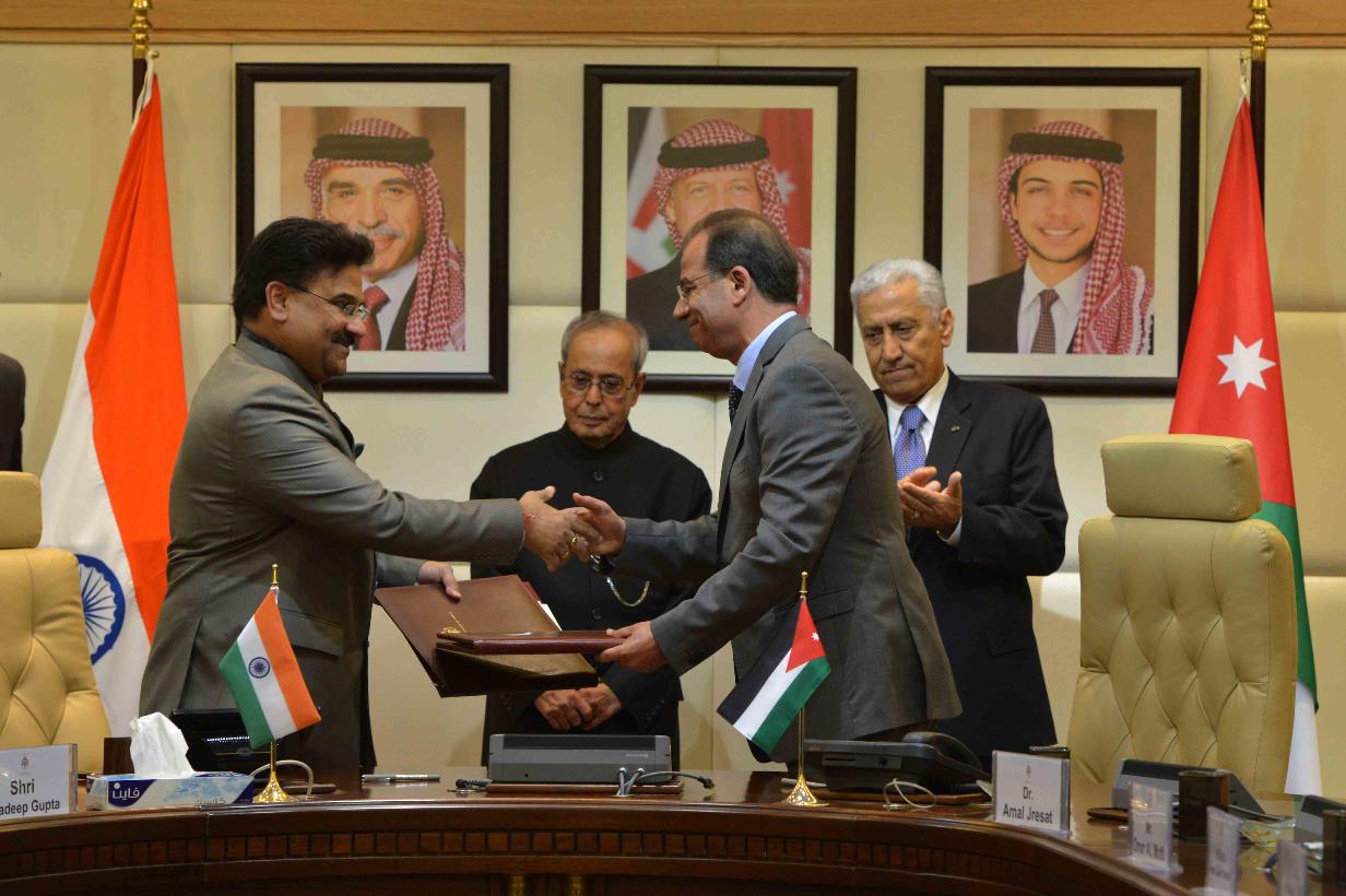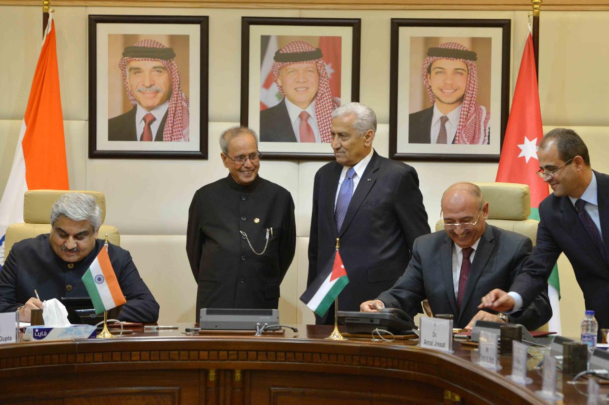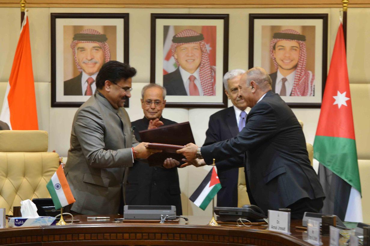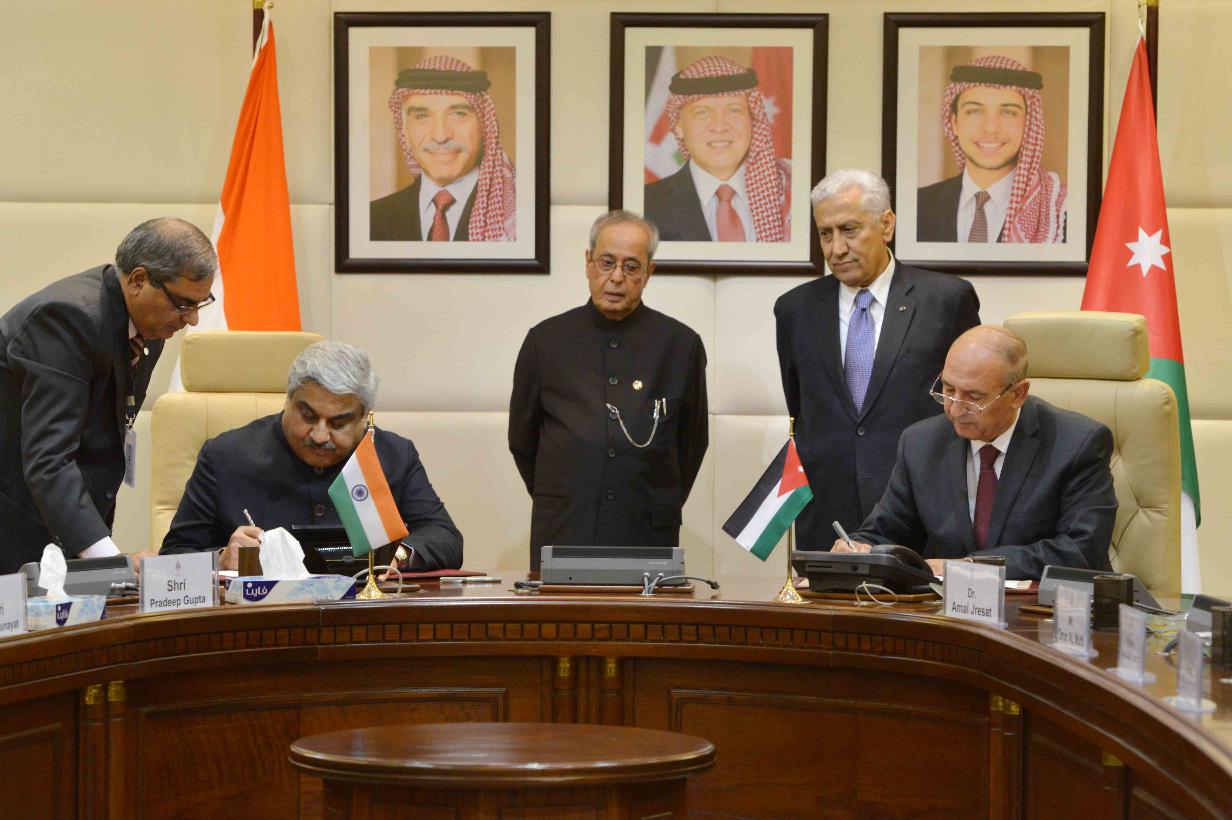 | Caption: | The President of India, Shri Pranab Mukherjee and the Prime Minister of Jordan, H.E. Dr. Abdullah Ensour, witnessing signing of various MoUs, at Government Office Complex, at Amman in Jordan on October 11, 2015. |