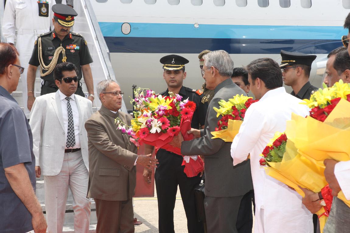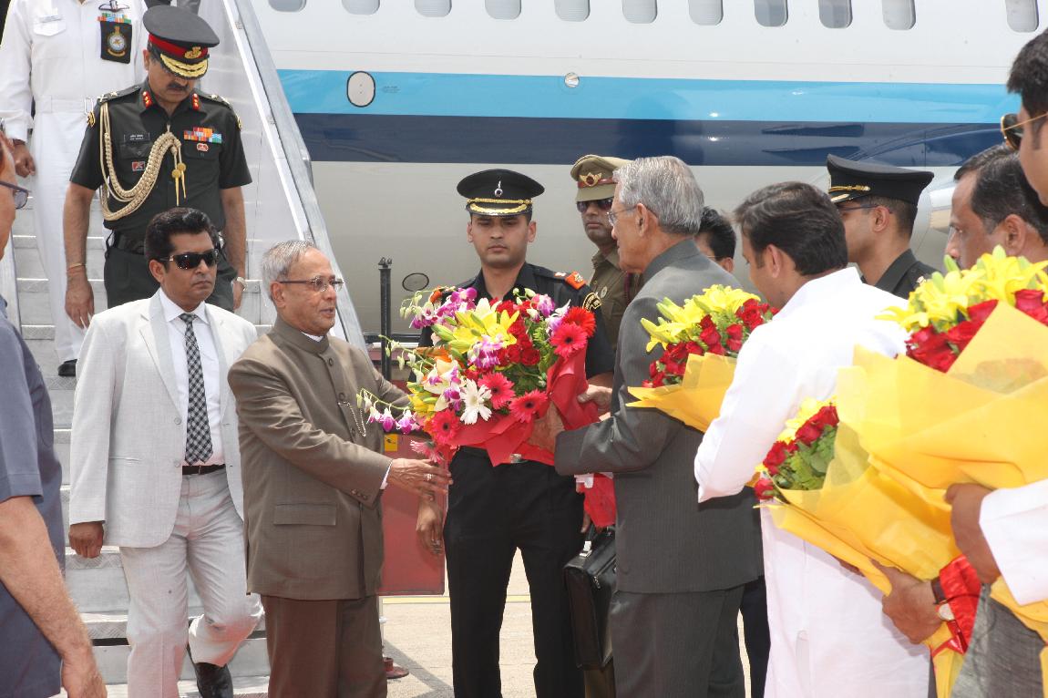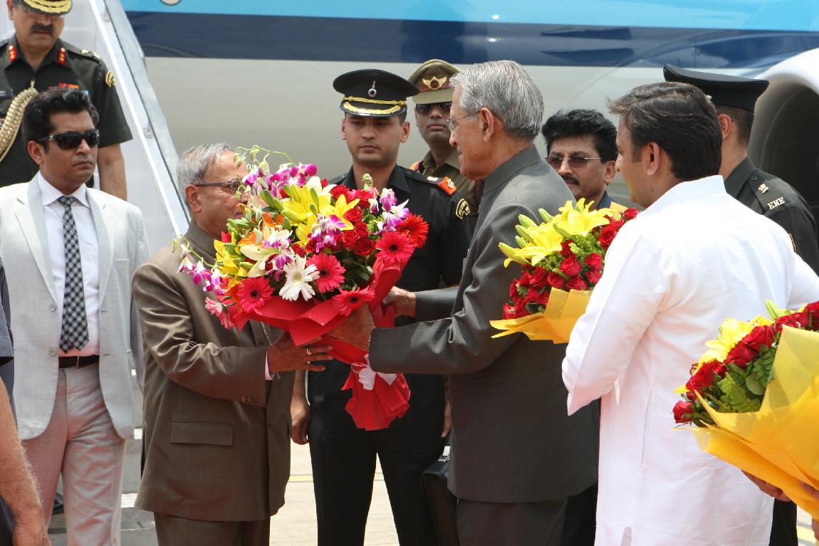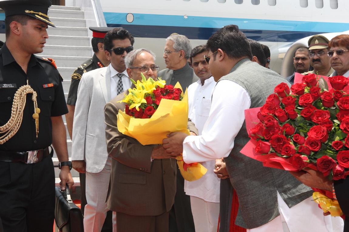 The President of India, Shri Pranab Mukherjee Arrival at Lucknow Airport on 10 May 2013