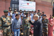 | Caption: | The President of India, Shri Pranab Mukherjee in a Group Photograph with the students of Army Goodwill School, Potha, Poonch district (Jammu & Kashmir) attending Operation Sadbhavana tour, organised by the 25 Rashtriya Rifles/16 Corps of Northern Command, at Rashtrapati Bhavan, in New Delhi on September 07, 2015. |