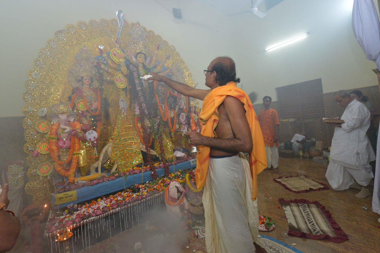 | Caption: | The President of India, Shri Pranab Mukherjee performing puja, at Mirati, during Durga Puja, at District Birbhum in West Bengal on October 20, 2015. |
