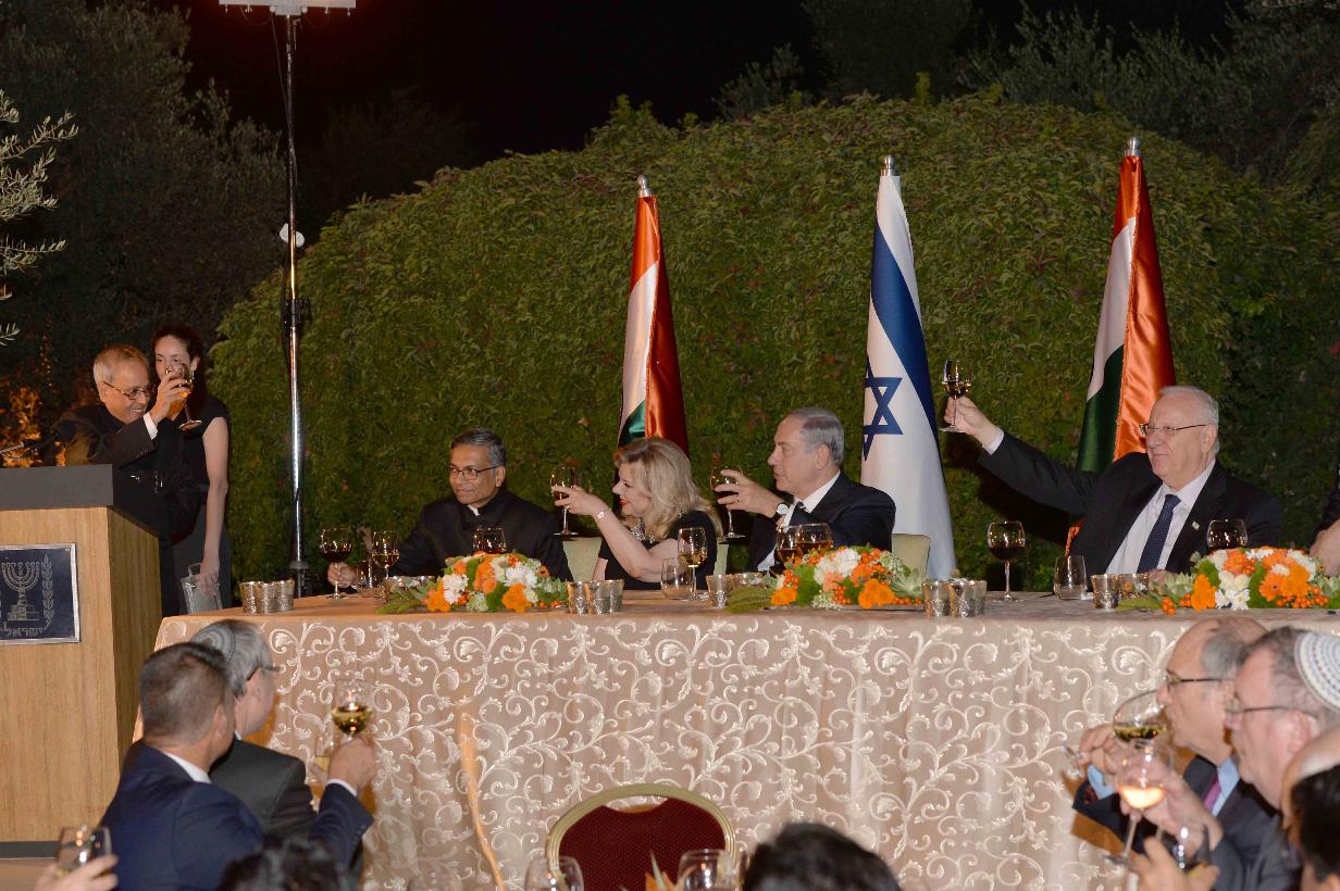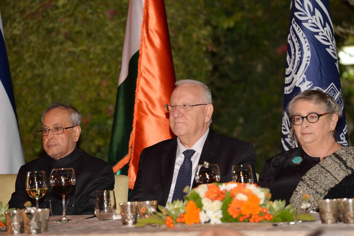 | Caption: | The President of India, Shri Pranab Mukherjee during the Banquet hosted by the President of Israel, Mr. Reuven Rivlin at President House, Jerusalem in Israel on October 14, 2015. |