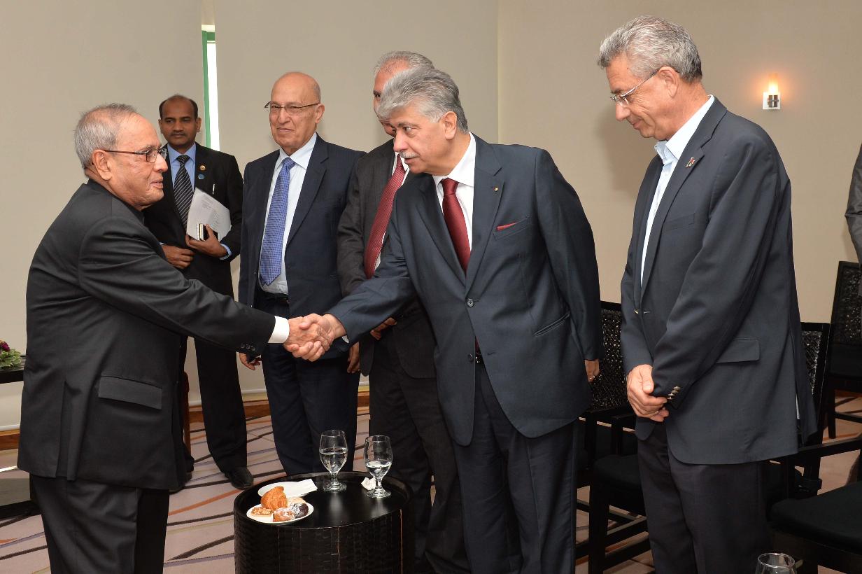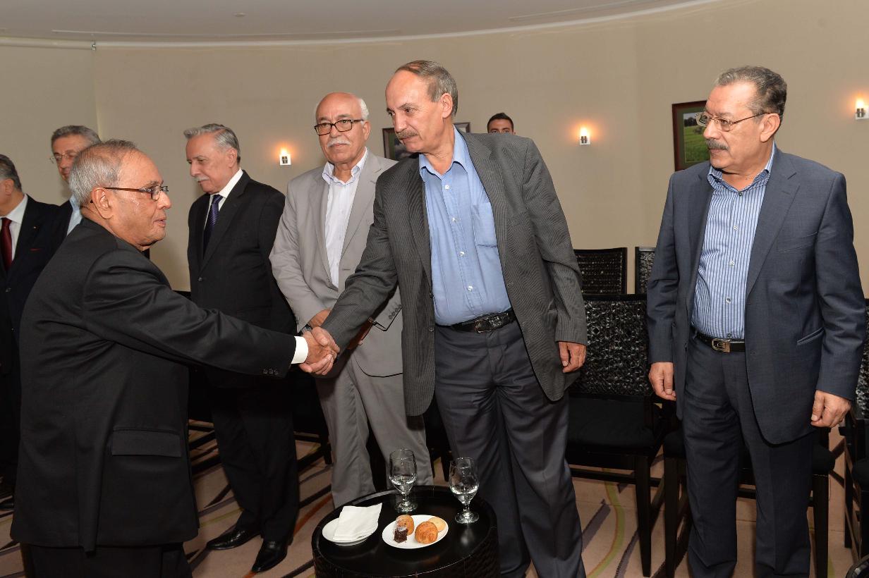| Caption: | Heads of Palestine Political Parties calling on the President of India Shri Pranab Mukherjee, at Hotel Movenpick, Ramallah, Palestine during his State visit on October 13, 2015. |