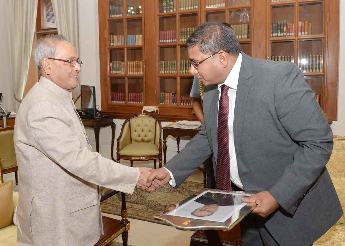 | Caption: | The President of India, Shri Pranab Mukherjee meeting with the Ambassador-designate of India to Tajikistan, Shri Biraja Prasad, at Rashtrapati Bhavan, in New Delhi on October 23, 2015. |