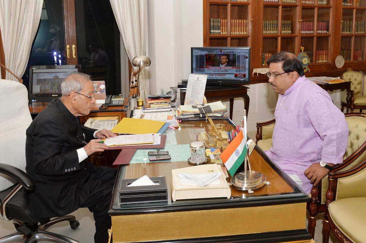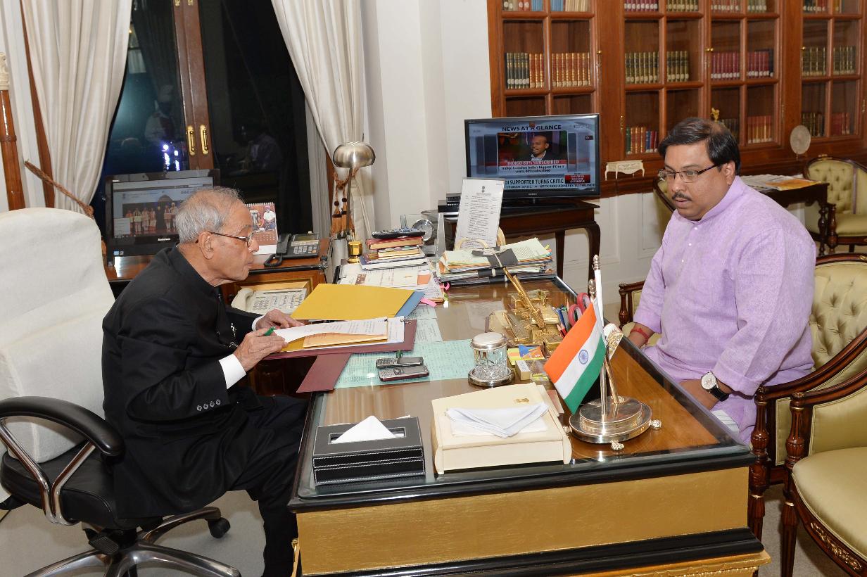 | Caption: | The President of India, Shri Pranab Mukherjee meeting with Shri Samrat Topadar, at Rashtrapati Bhavan, in New Delhi on October 27, 2015. |