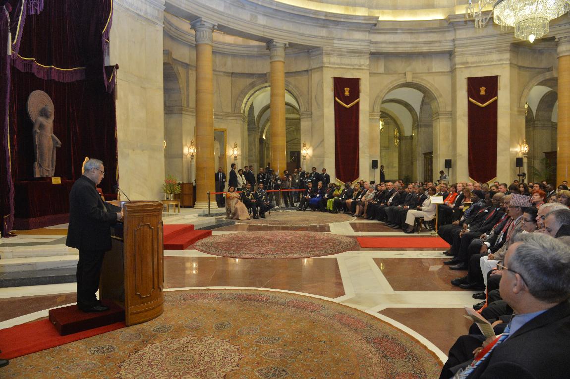 | Caption: | The President of India, Shri Pranab Mukherjee Attending The 13th International Conference of Chief Justices with Delegates on Dec 06, 2012 |