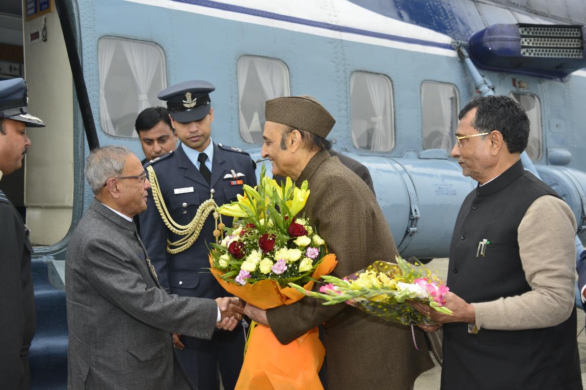 The President of India, Shri Pranab Mukherjee Arriving MNIT Helipad on Dec 25, 2012