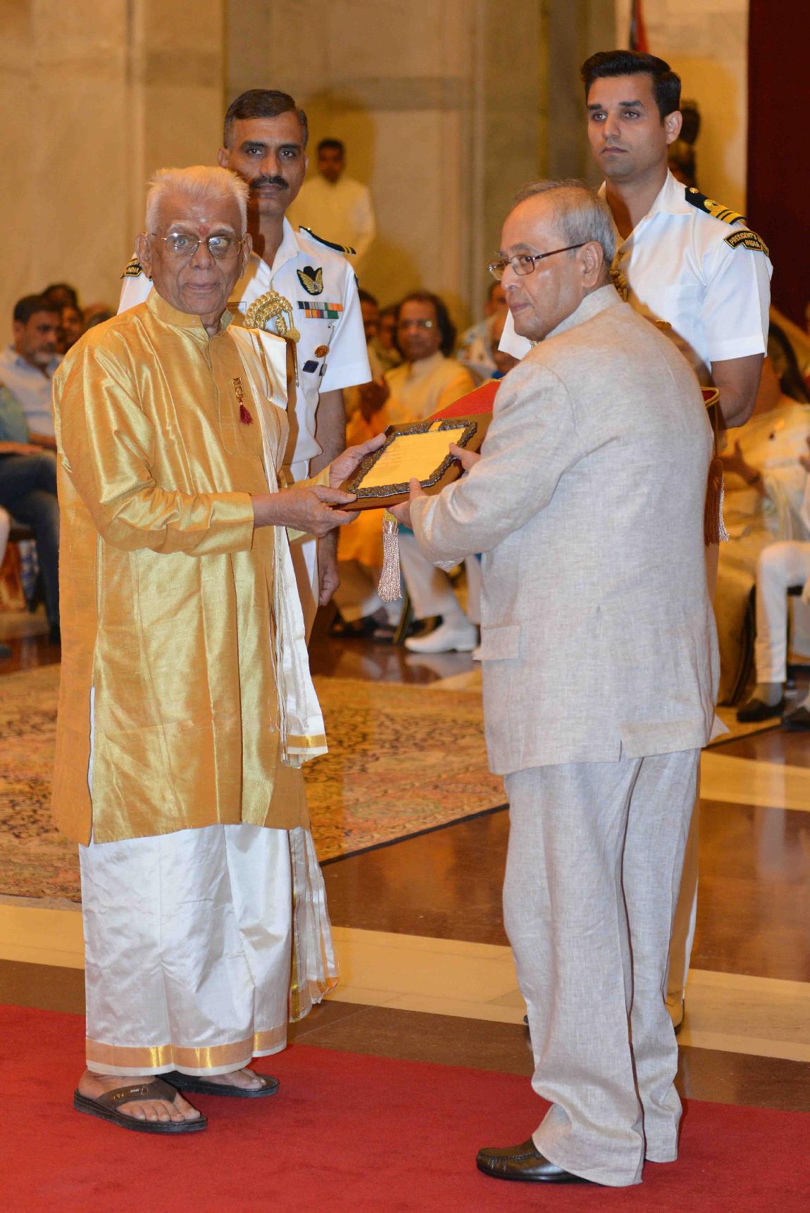 | Caption: | The President of India, Shri Pranab Mukherjee presenting Sangeet Natak Akademi Fellowships Awards for the year 2014, at Rashtrapati Bhavan on October 23, 2015. |