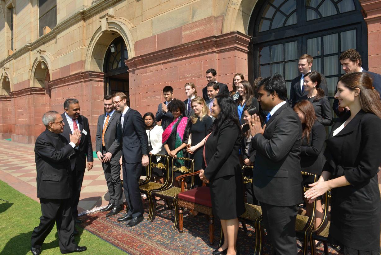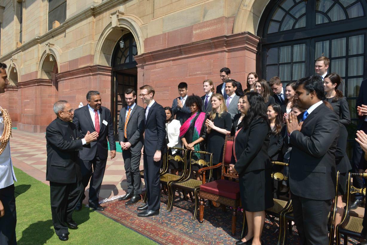 | Caption: | The President of India, Shri Pranab Mukherjee with the MBA Students from Kellogg School of Management, Northwestern University, Evanston, USA, at Rashtrapati Bhavan, in New Delhi on March 18, 2015. |