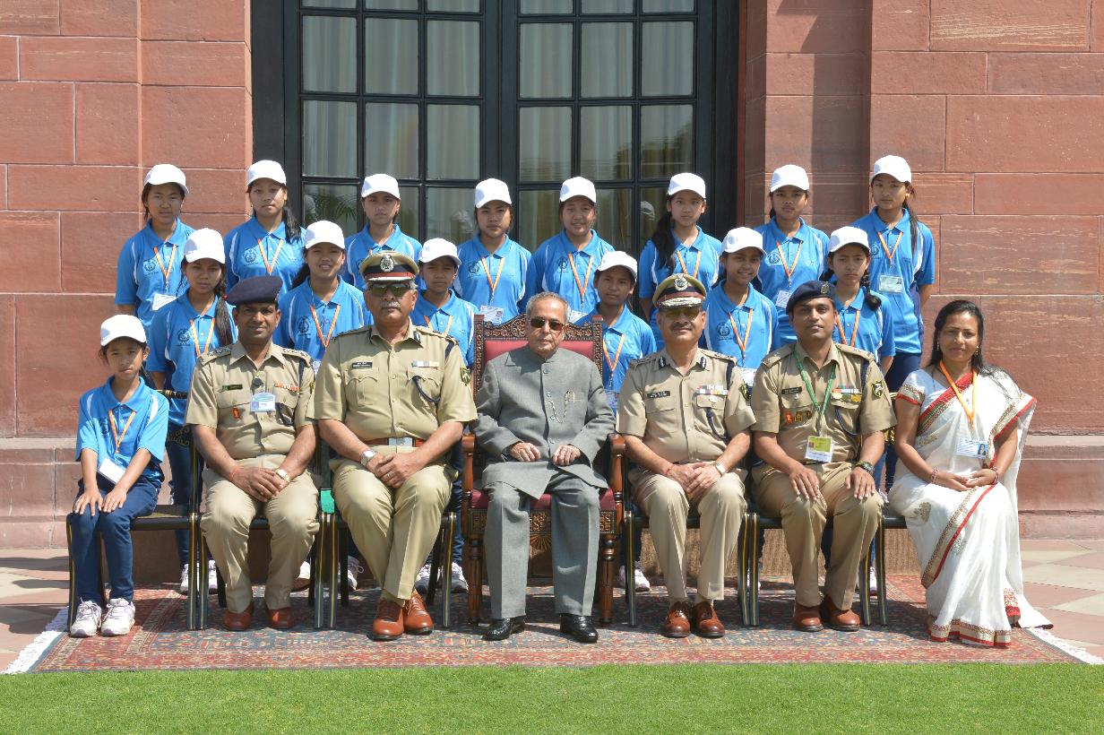 | Caption: | The President of India, Shri Pranab Mukherjee with the students from Arunachal Pradesh attending Excursion tour under Civil Action Programme organized by the Indo-Tibetan Border Police, at Rashtrapati Bhavan, in New Delhi on March 24, 2015. |