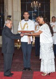| Caption: | The Ambassador-Designate of Mexico, HE Mrs. Melba Maria Pria Olavarrieta presenting her Credentials to the President of India, Shri Pranab Mukherjee, at Rashtrapati Bhavan, in New Delhi on April 30, 2015. |