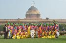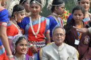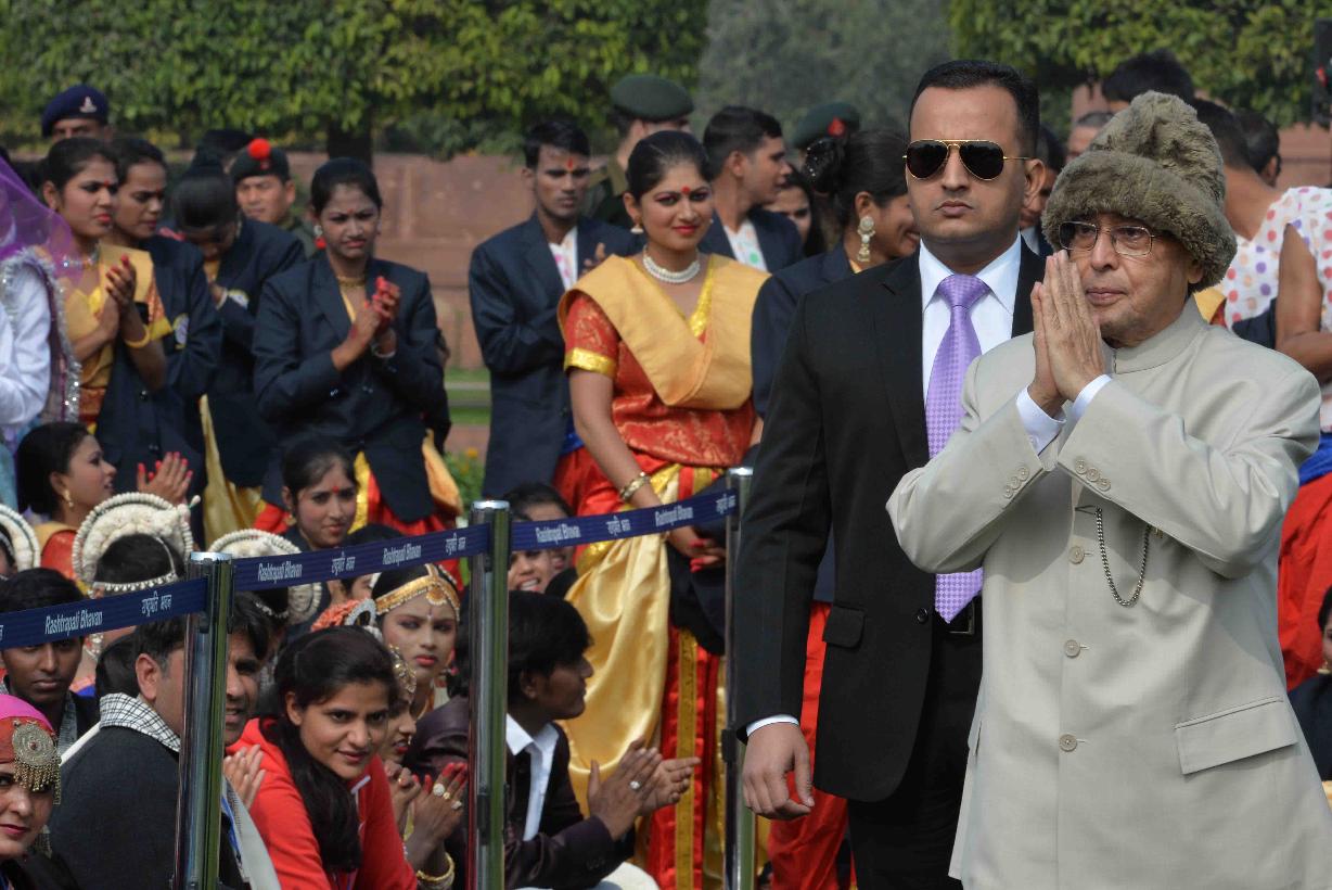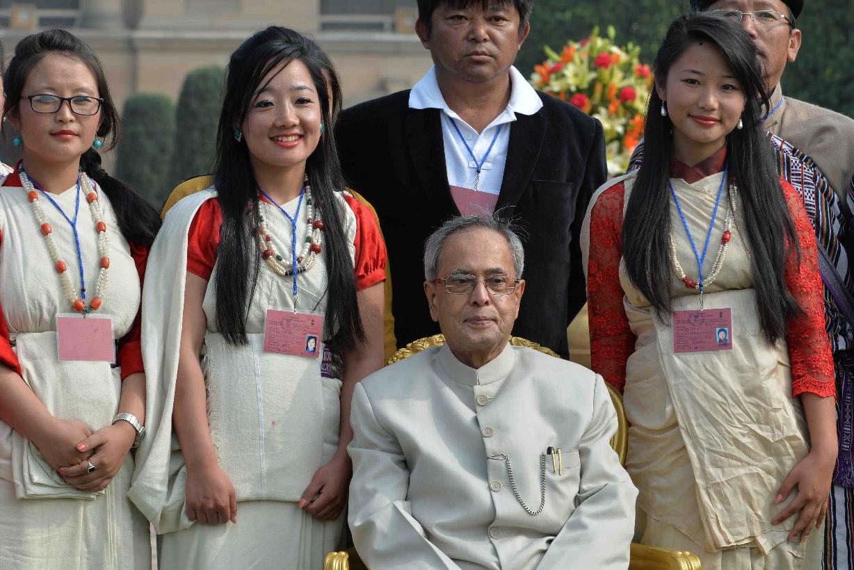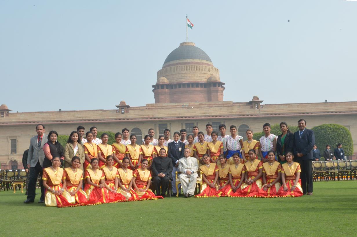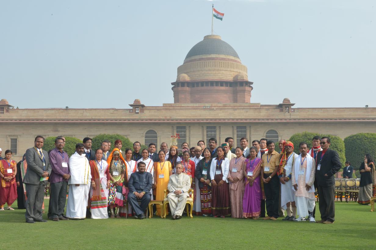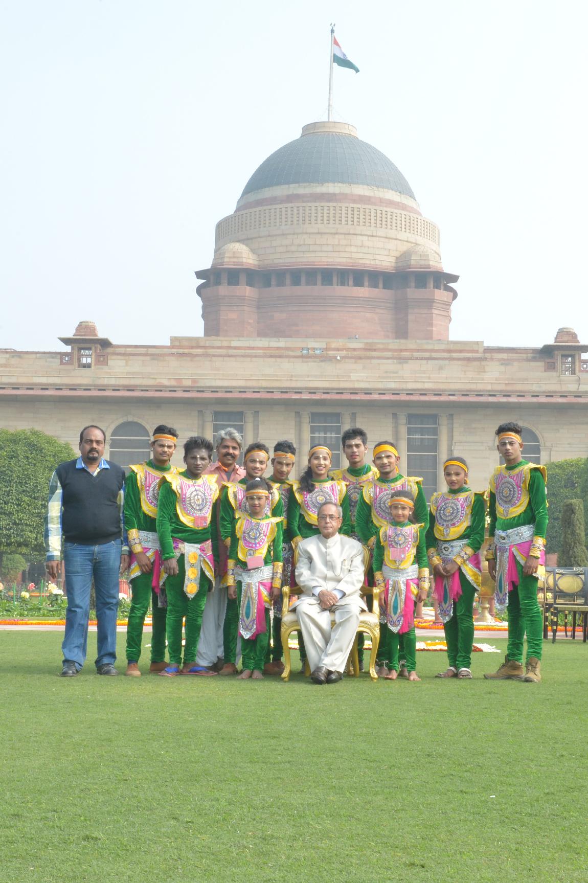 | Caption: | The President of India, Shri Pranab Mukherjee meeting with the Tribal Guests, Tableaux Artists, NCC Volunteers and NCC Cadets, at Rashtrapati Bhavan, in New Delhi on January 27, 2015 |
