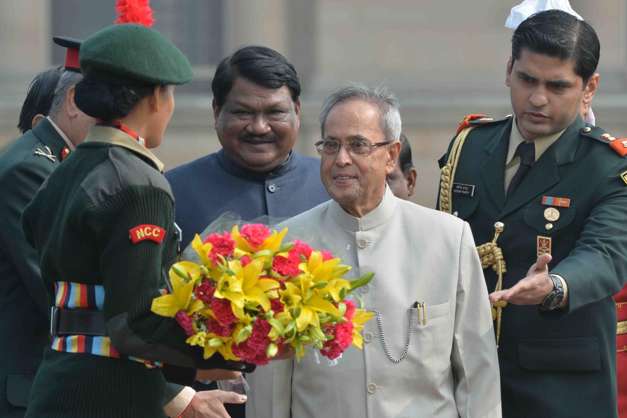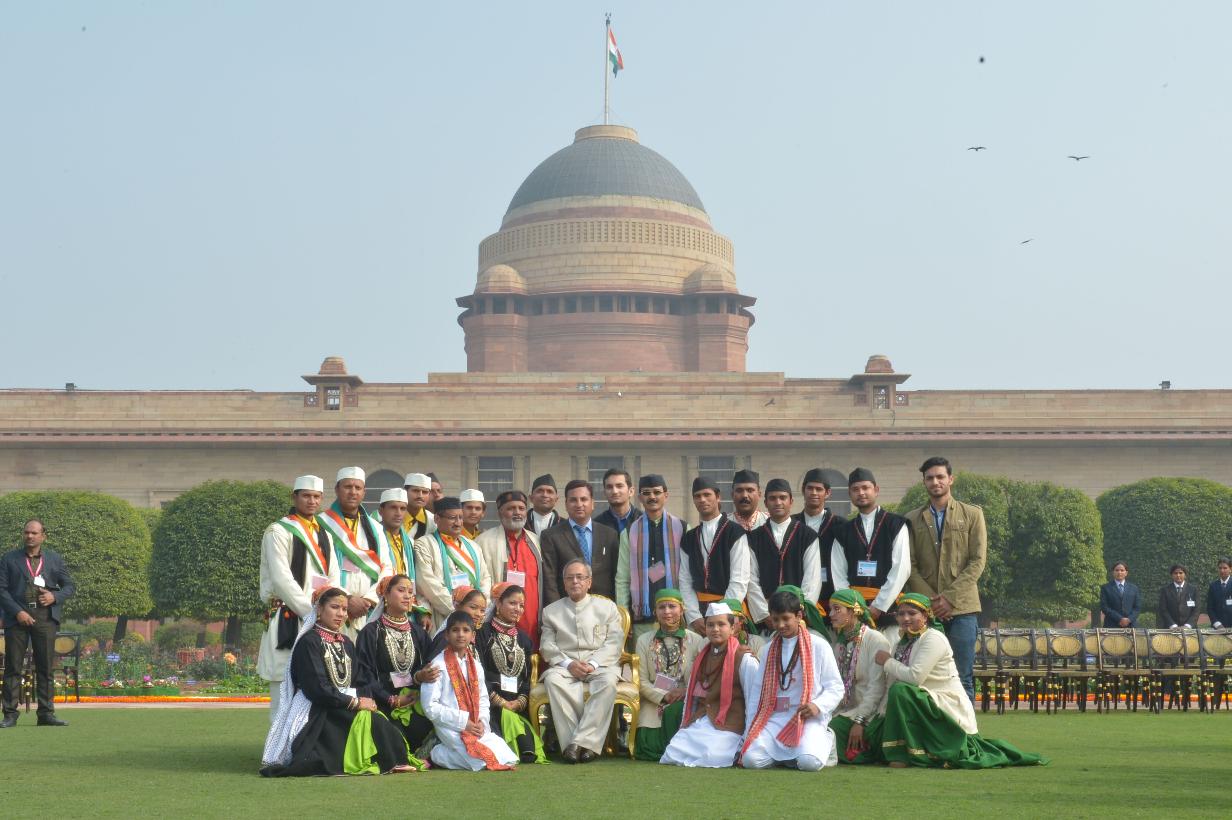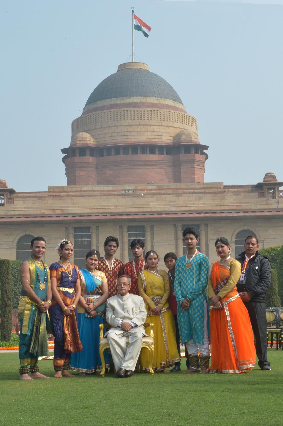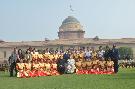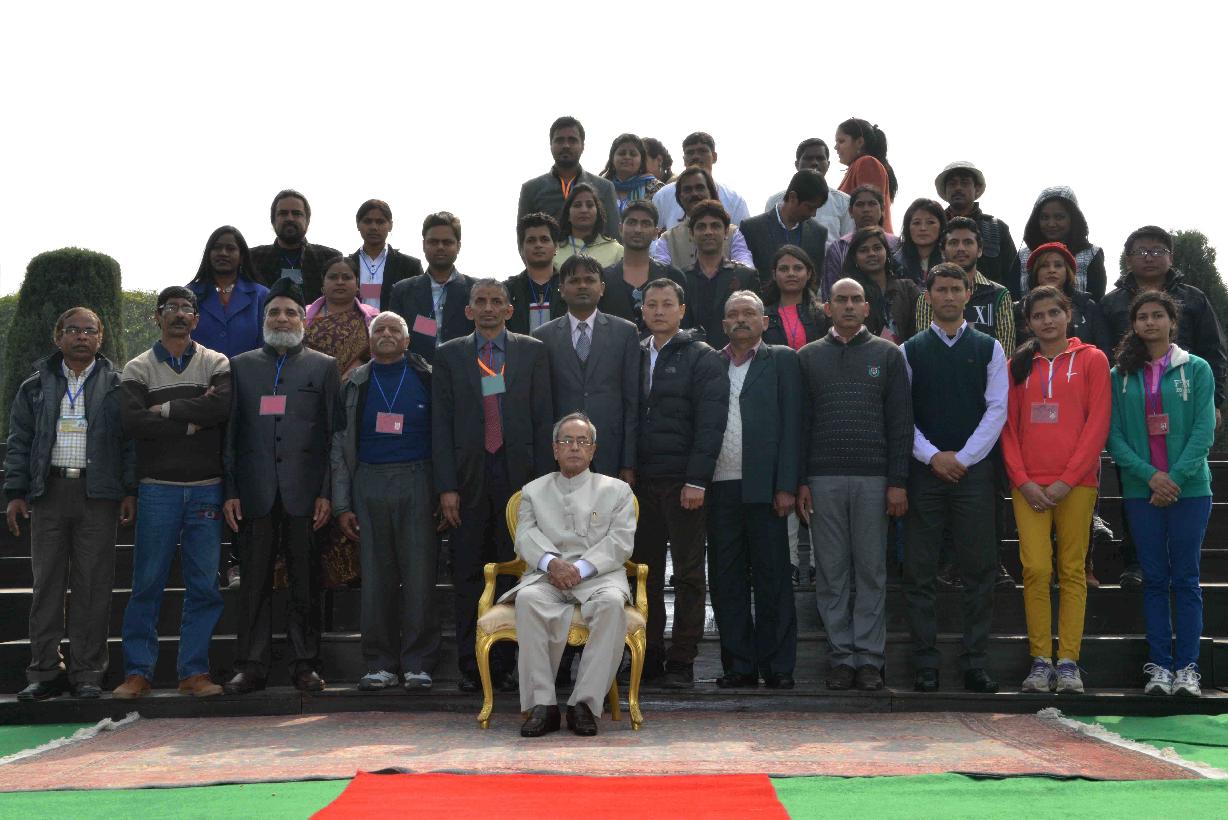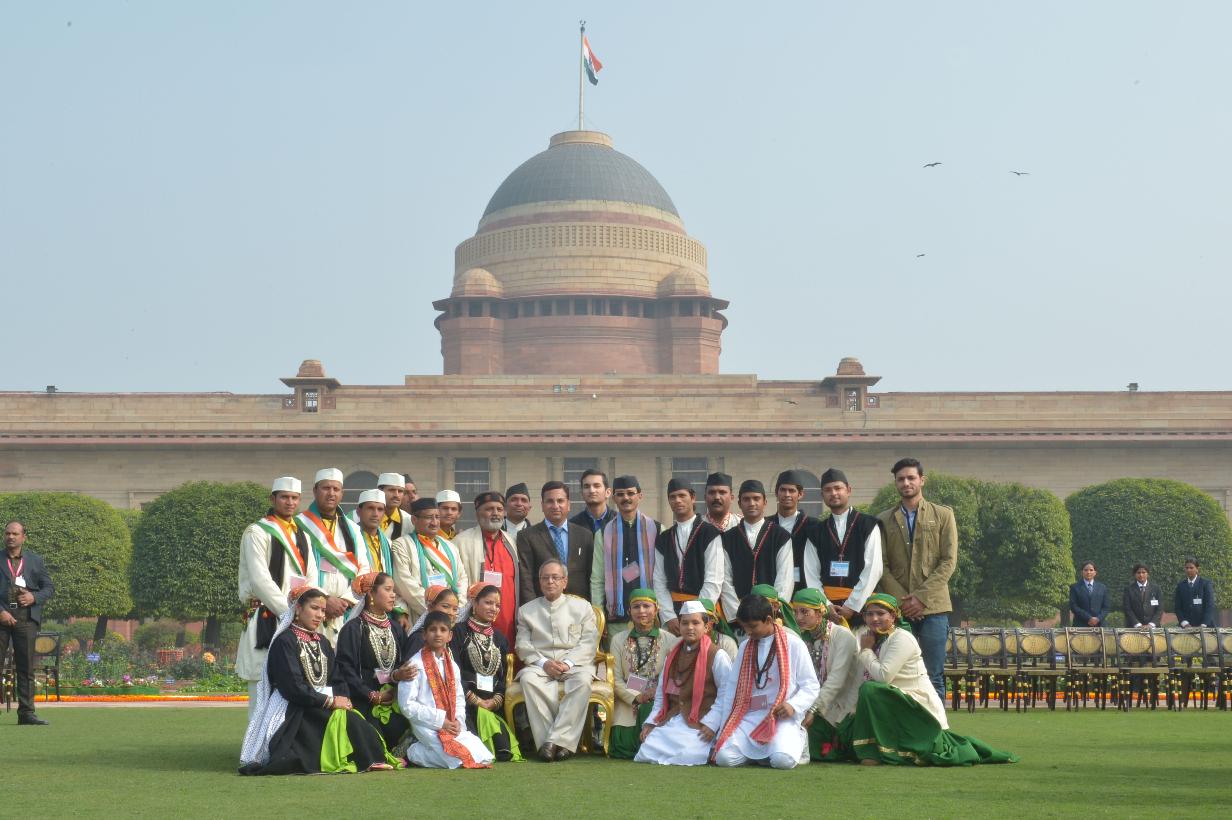| Caption: | The President of India, Shri Pranab Mukherjee meeting with the Tribal Guests, Tableaux Artists, NCC Volunteers and NCC Cadets, at Rashtrapati Bhavan, in New Delhi on January 27, 2015 |