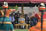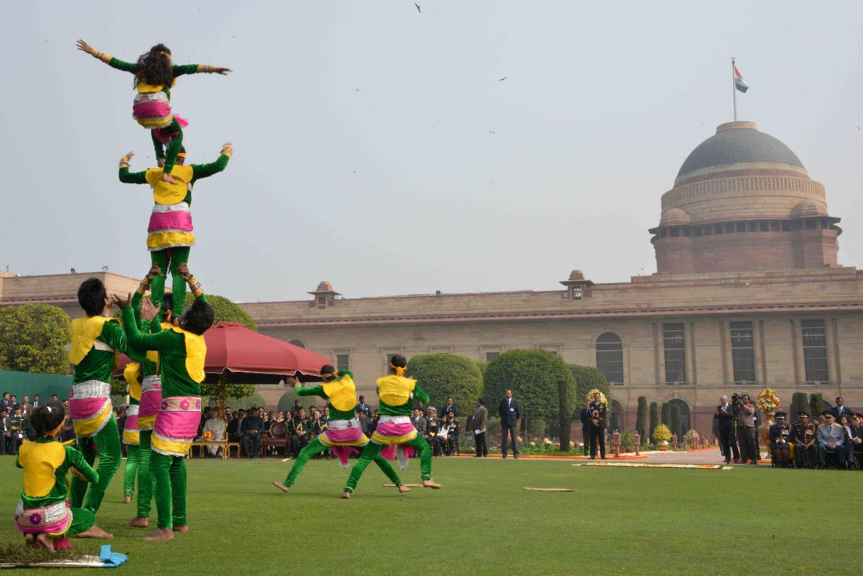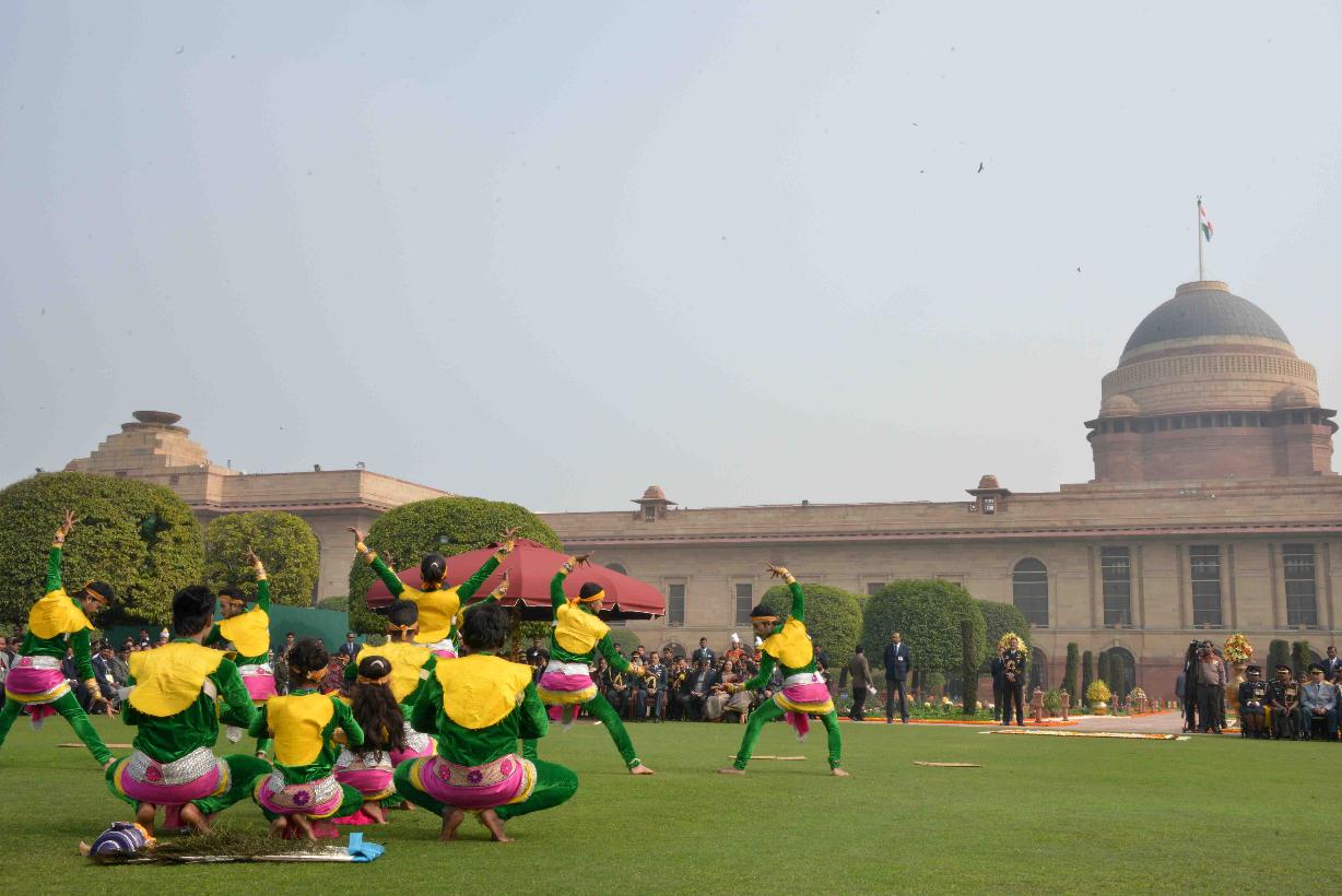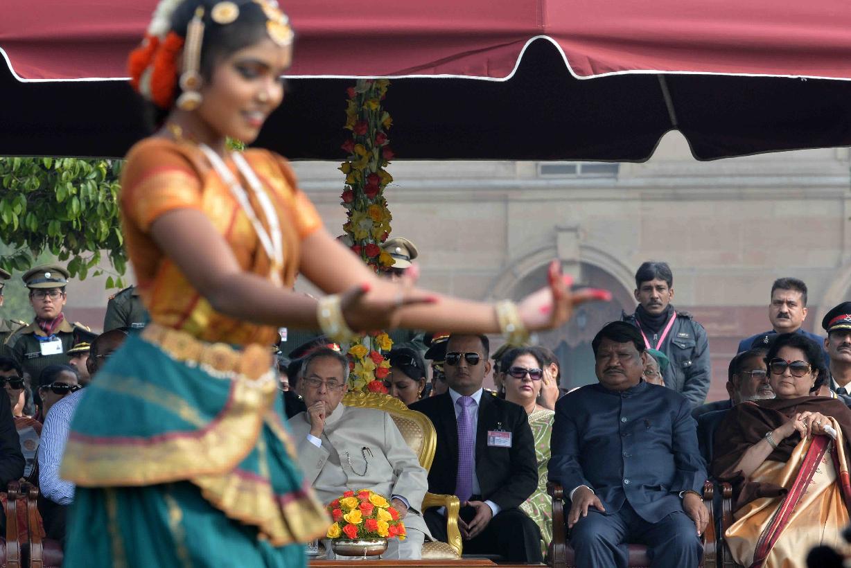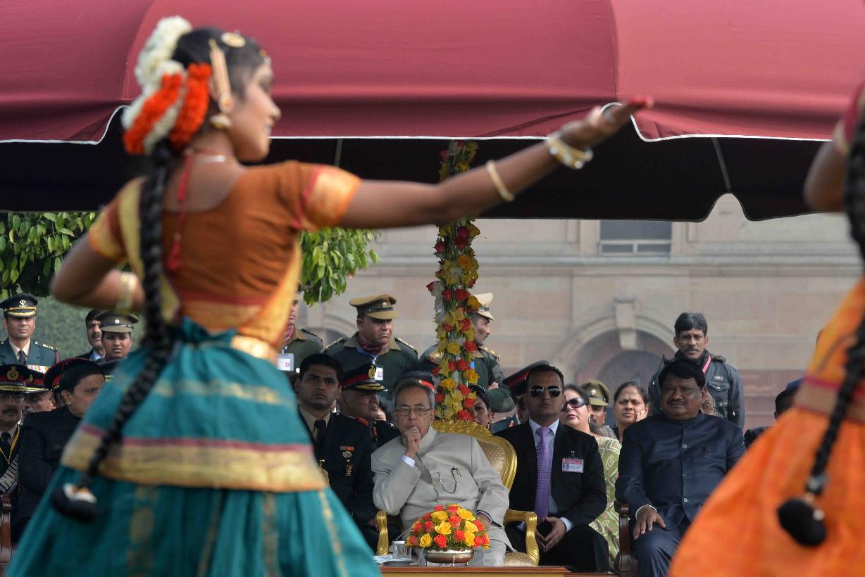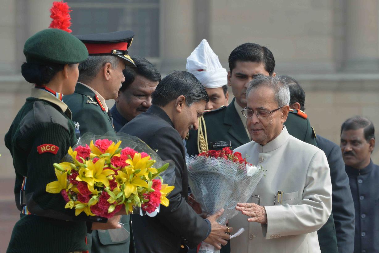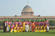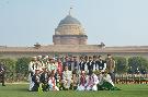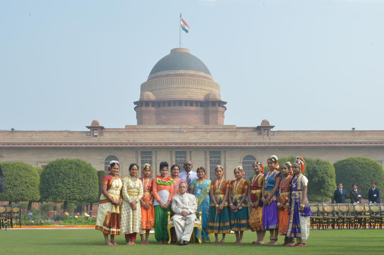 | Caption: | The President of India, Shri Pranab Mukherjee meeting with the Tribal Guests, Tableaux Artists, NCC Volunteers and NCC Cadets, at Rashtrapati Bhavan, in New Delhi on January 27, 2015 |