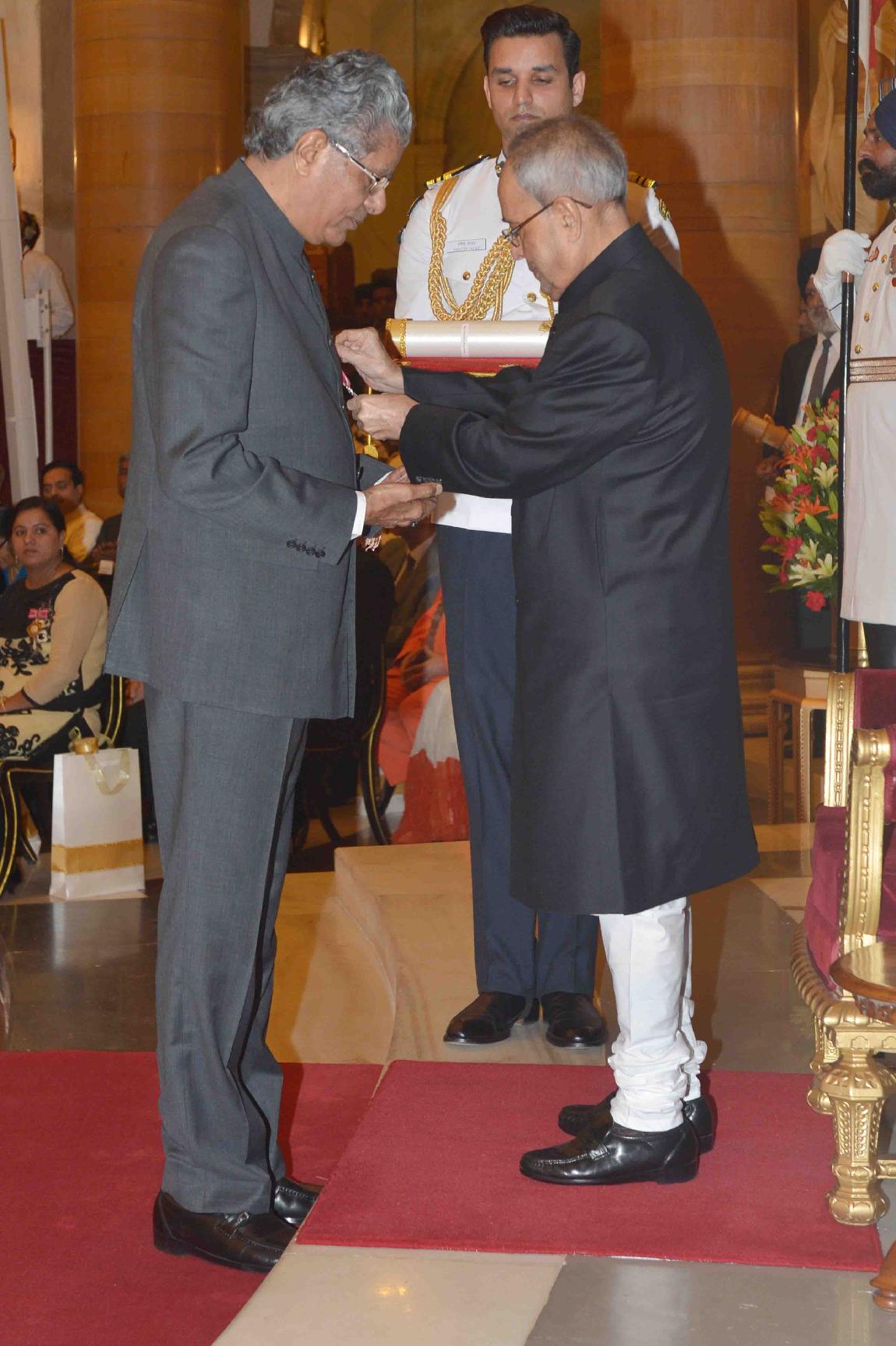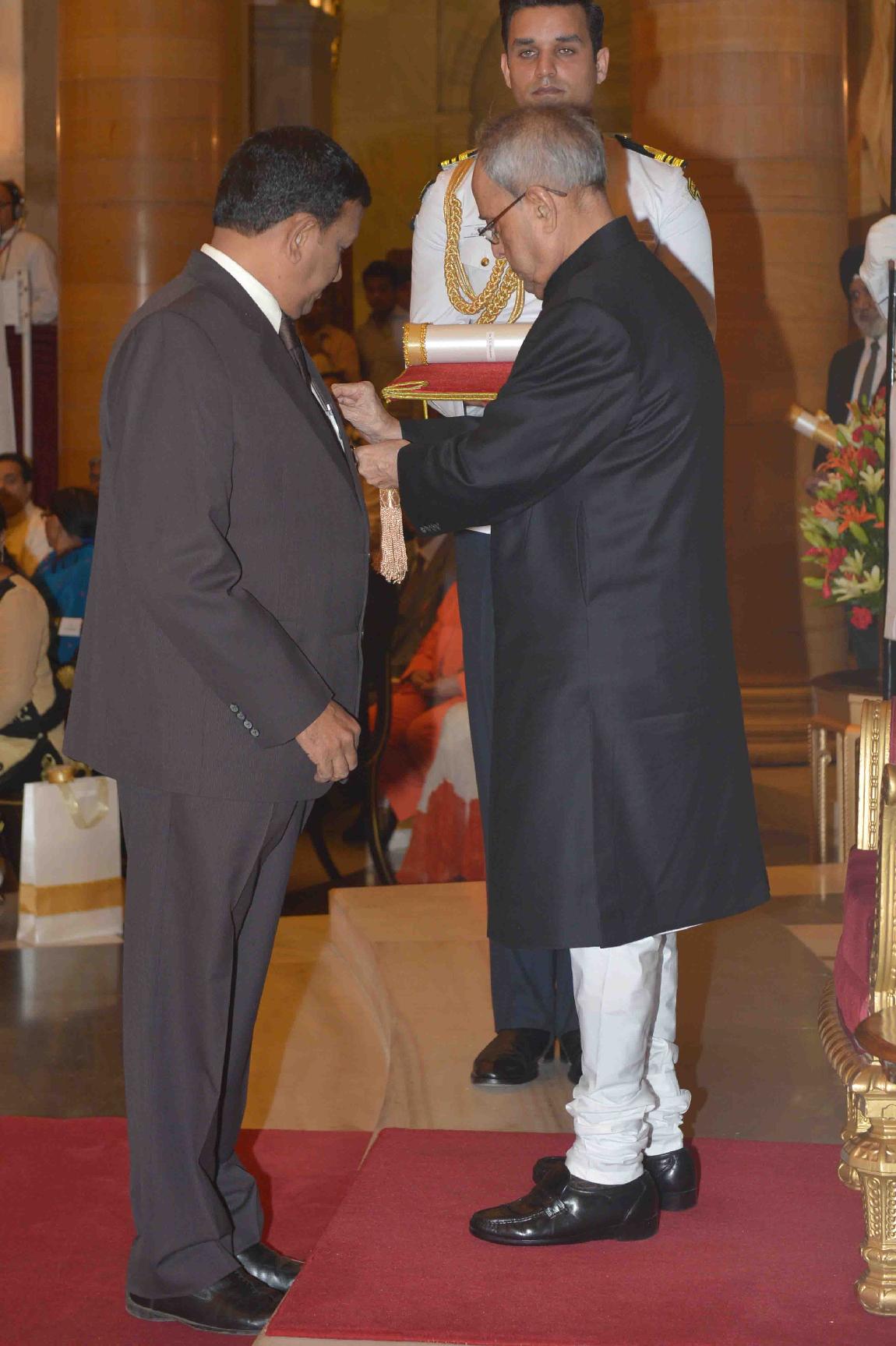 | Caption: | The President of India, Shri Pranab Mukherjee presenting Padma Shri awards, at an Investiture Ceremony, at Rashtrapati Bhavan, in New Delhi on April 08, 2015. |