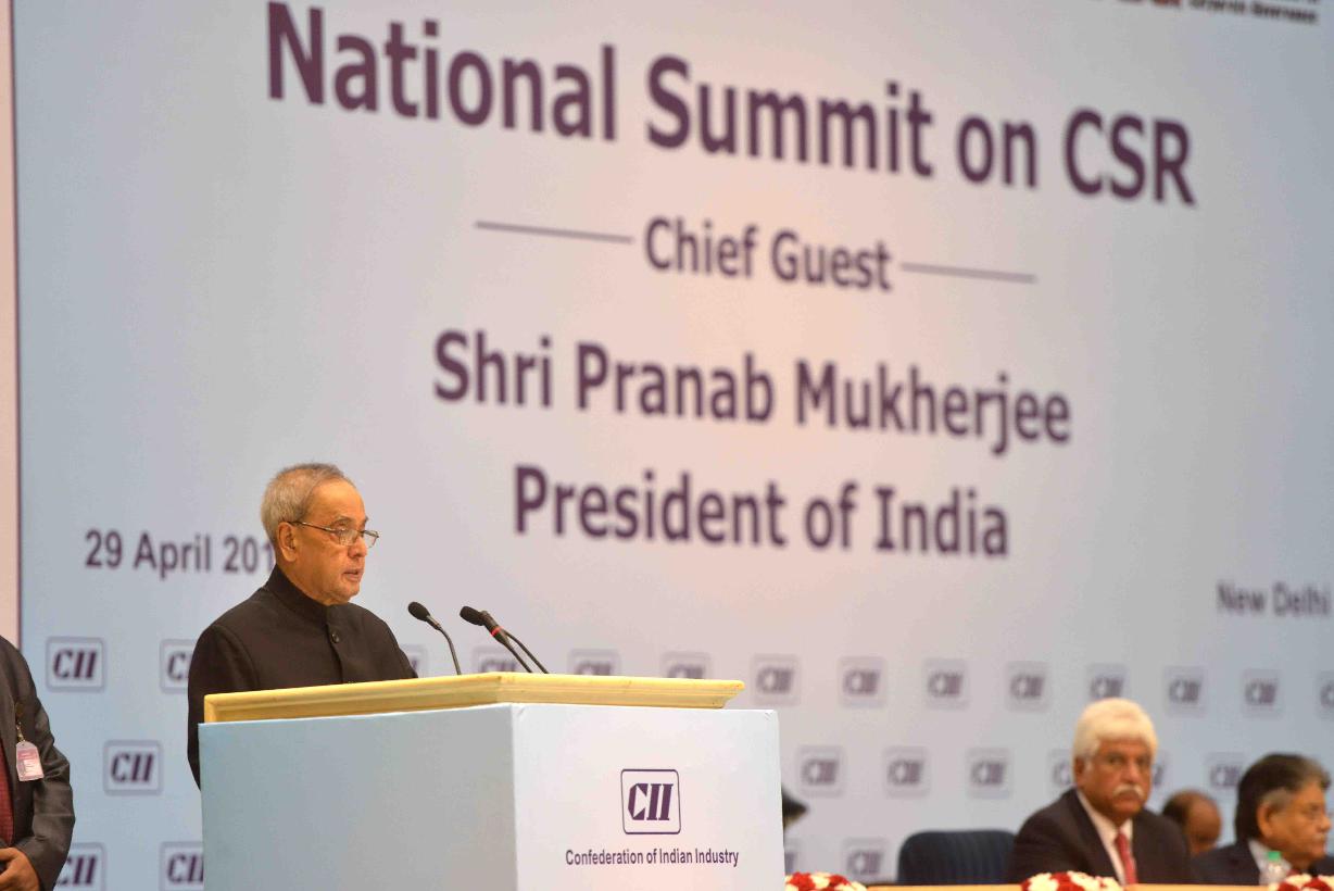 | Caption: | The President of India, Shri Pranab Mukherjee attending the National Summit on CSR on the theme 'Boardroom and Beyond', organized by the Confederation of Indian Industry (CII), in New Delhi on April 29, 2015. |