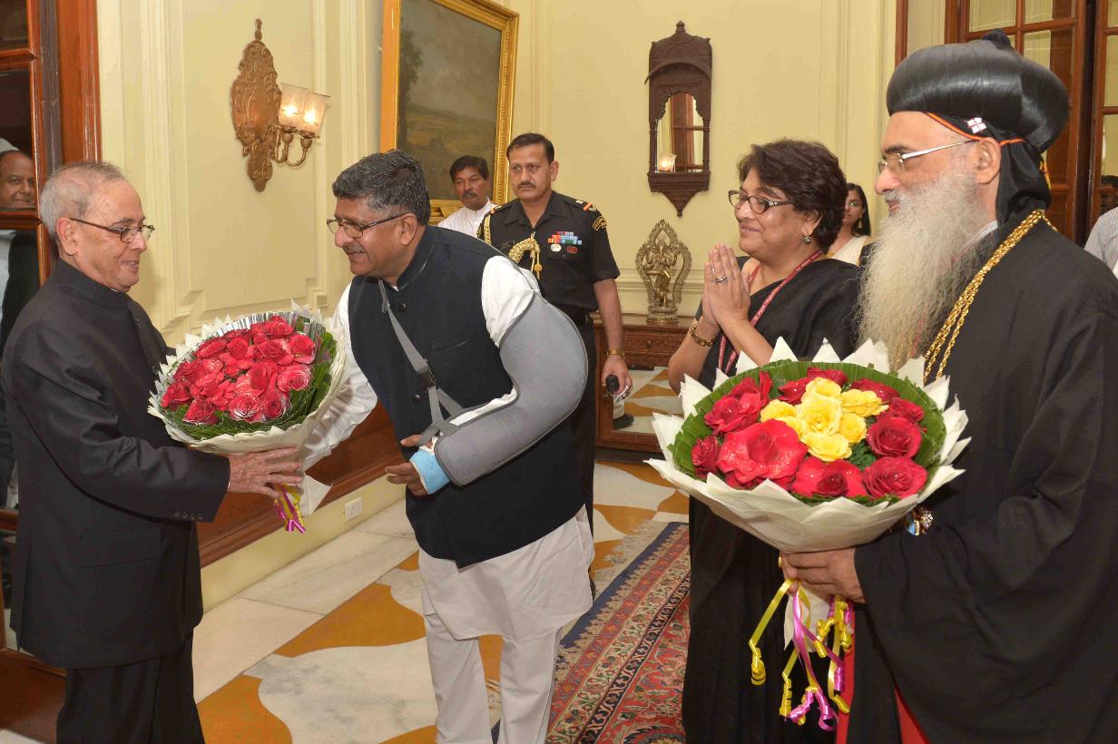 | Caption: | The President of India, Shri Pranab Mukherjee releasing the Commemorative Postage Stamp on Old Seminary, Kottayam, at Rashtrapati Bhavan, in New Delhi on April 21, 2015. |