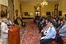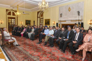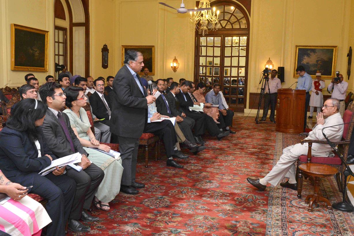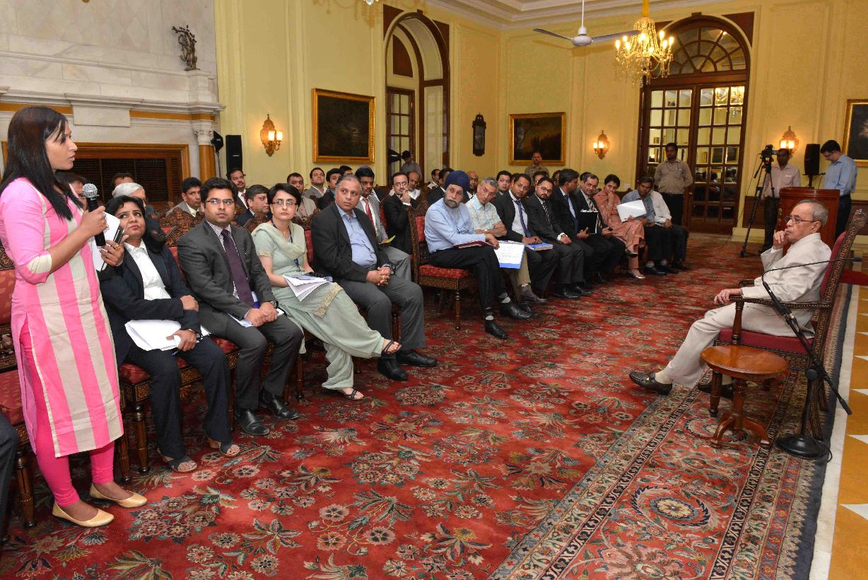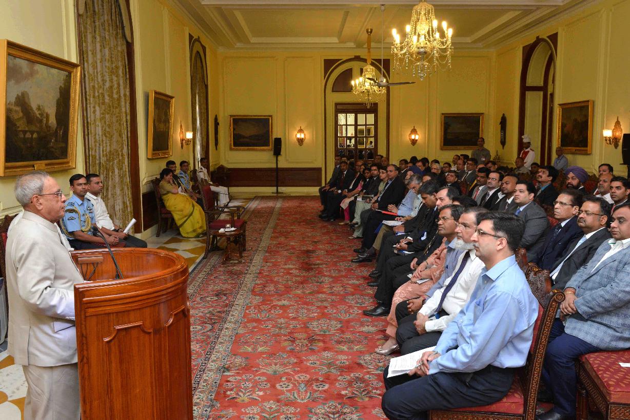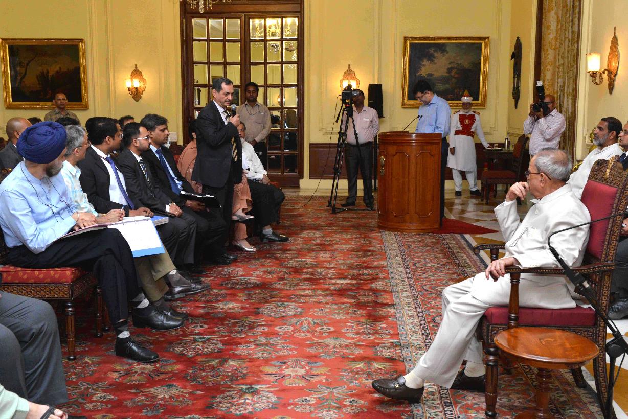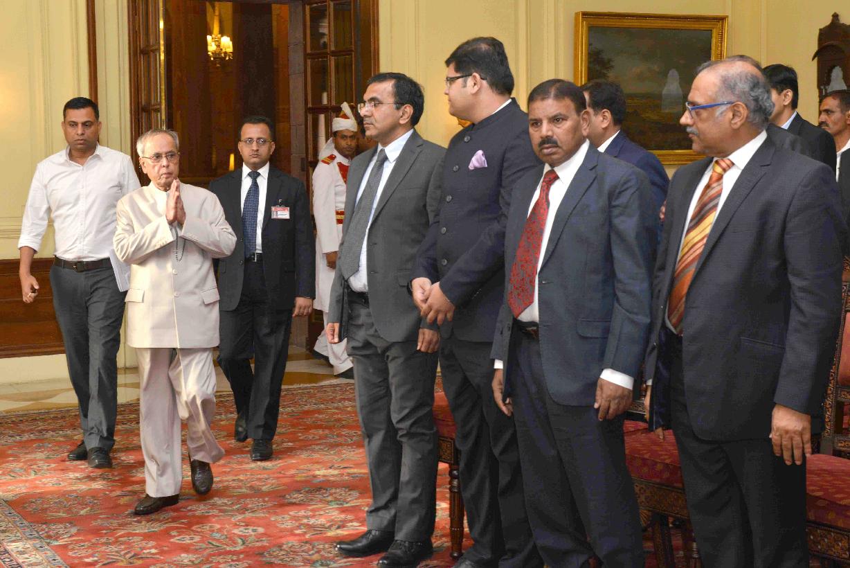 | Caption: | The President of India, Shri Pranab Mukherjee meeting the Business Delegation for the President's State visits to Sweden and Belarus, at Rashtrapati Bhavan, in New Delhi on May 28, 2015. |