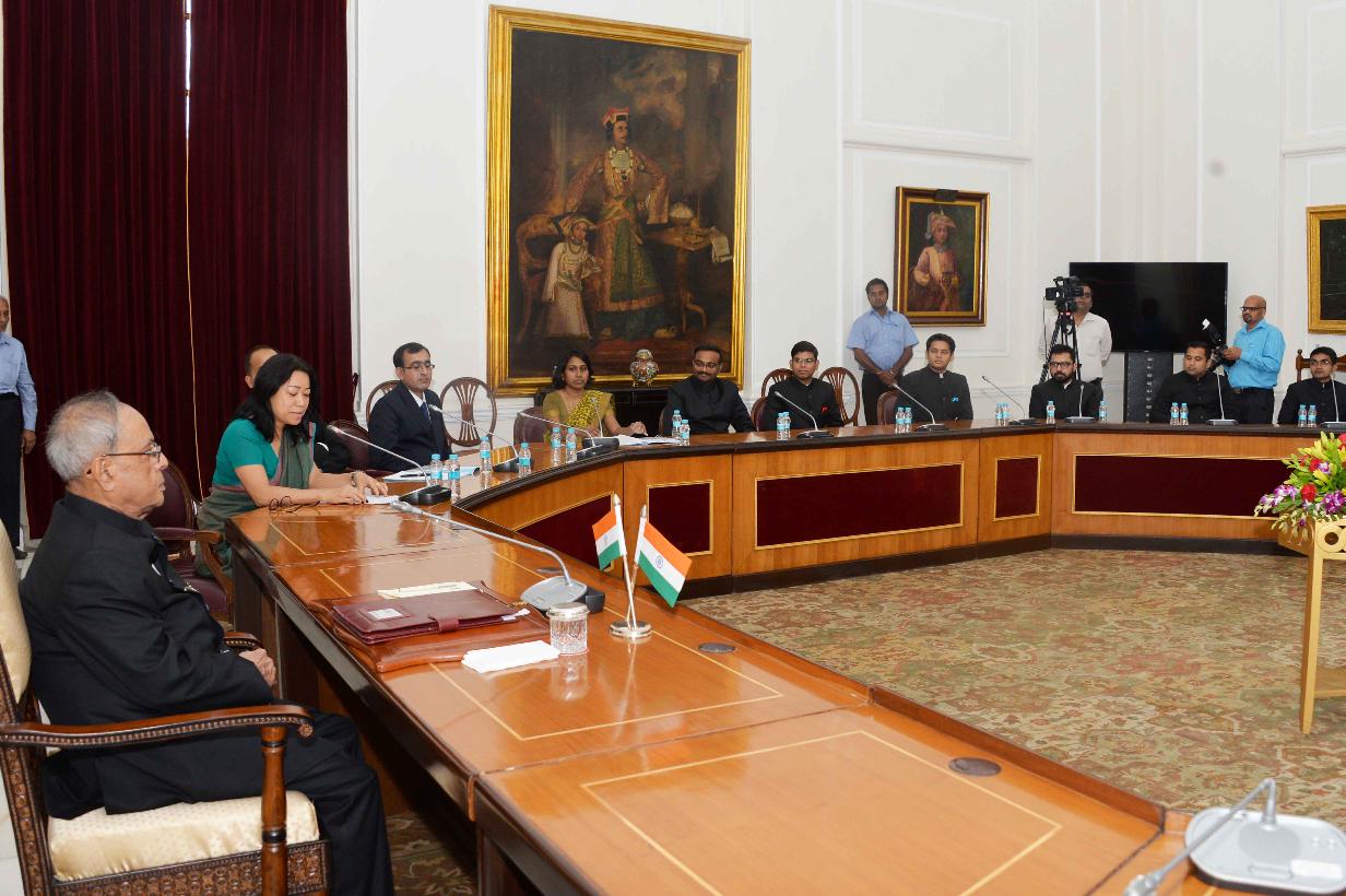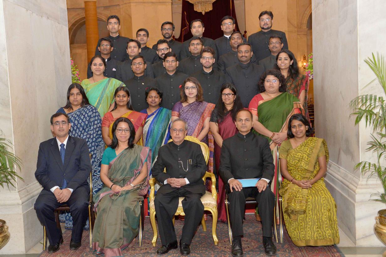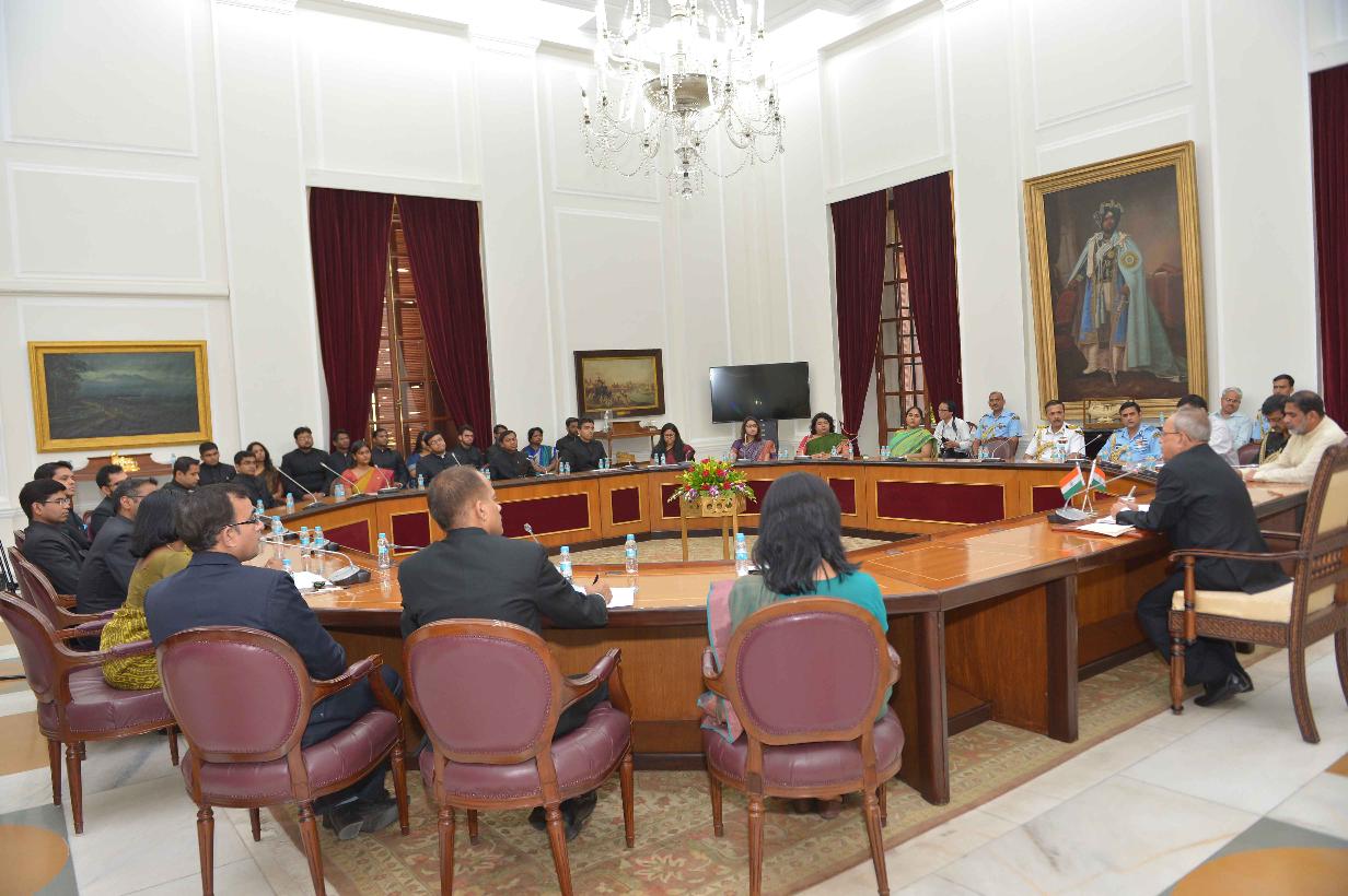 | Caption: | The President of India, Shri Pranab Mukherjee meeting with the Officer Trainees of Indian Foreign Service of 2013 Batch from Foreign Service Institute, at Rashtrapati Bhavan, in New Delhi on May 27, 2015. |