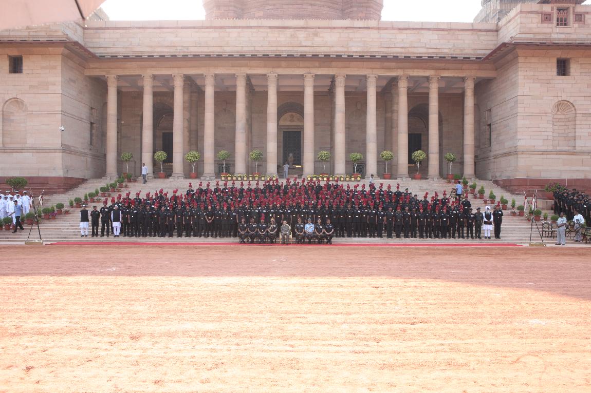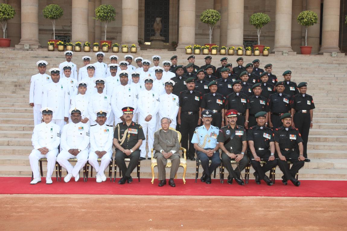 | Caption: | The President of India, Shri Pranab Mukherjee Posing for a Group Photograph with Officer's & JCOs on April 01, 2013 |