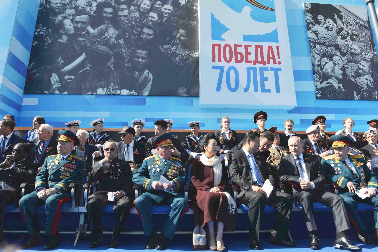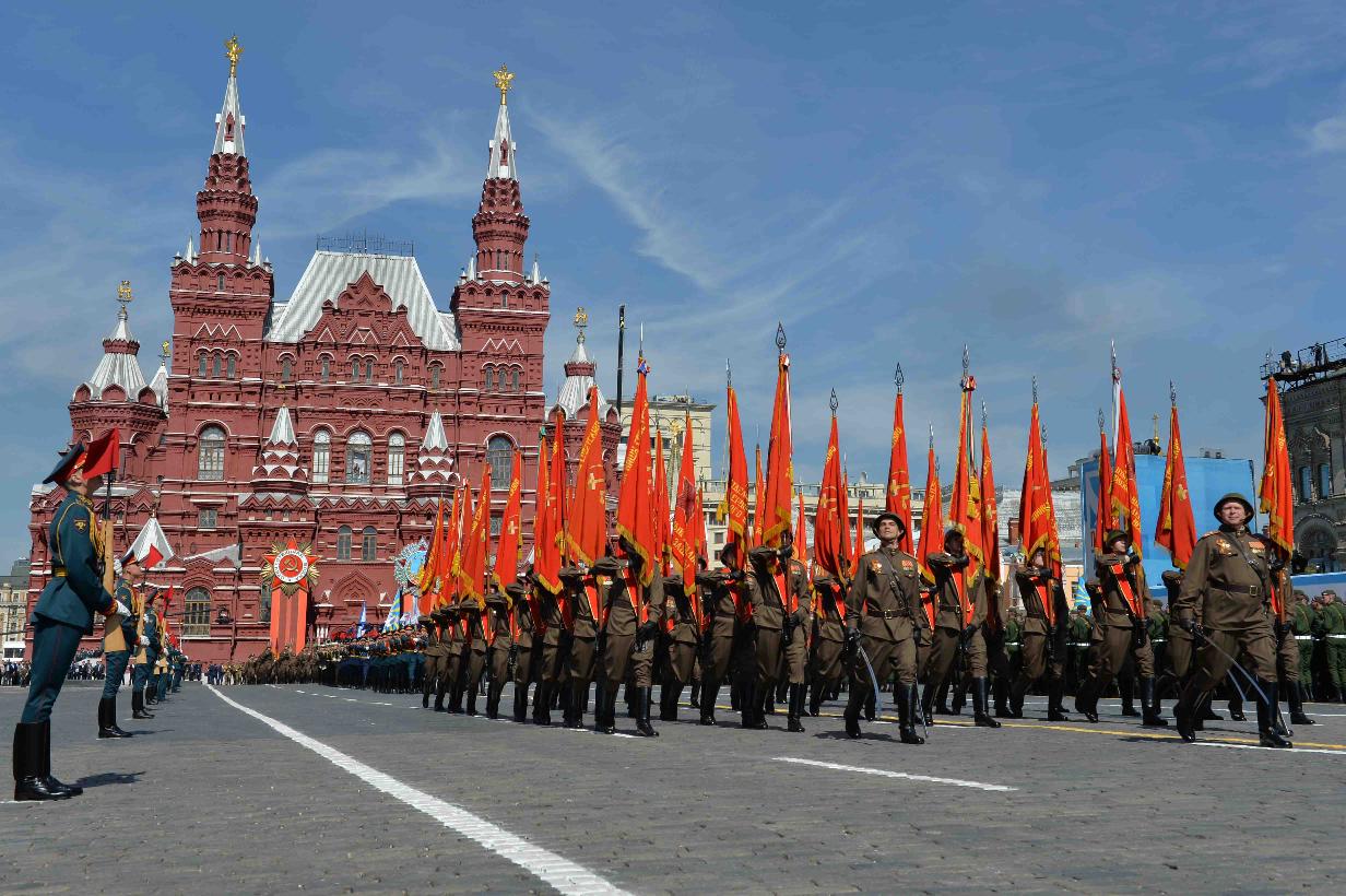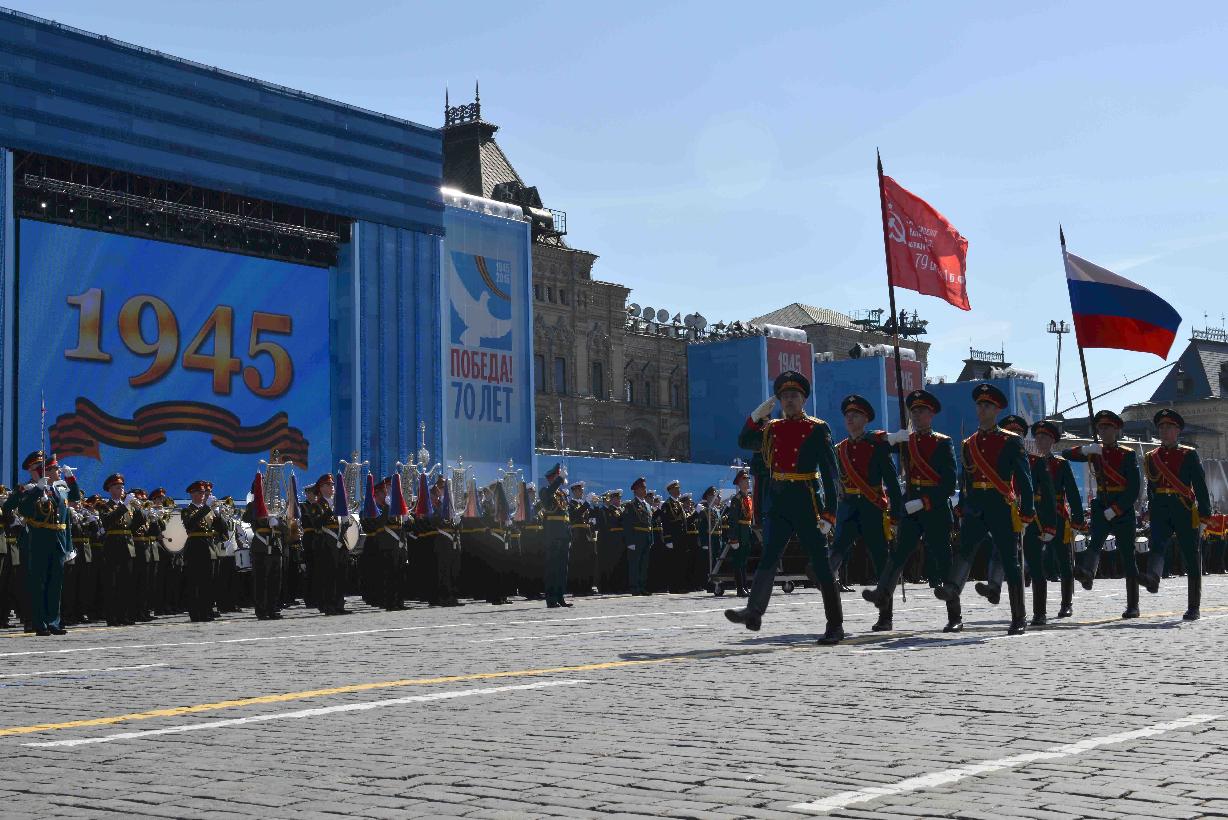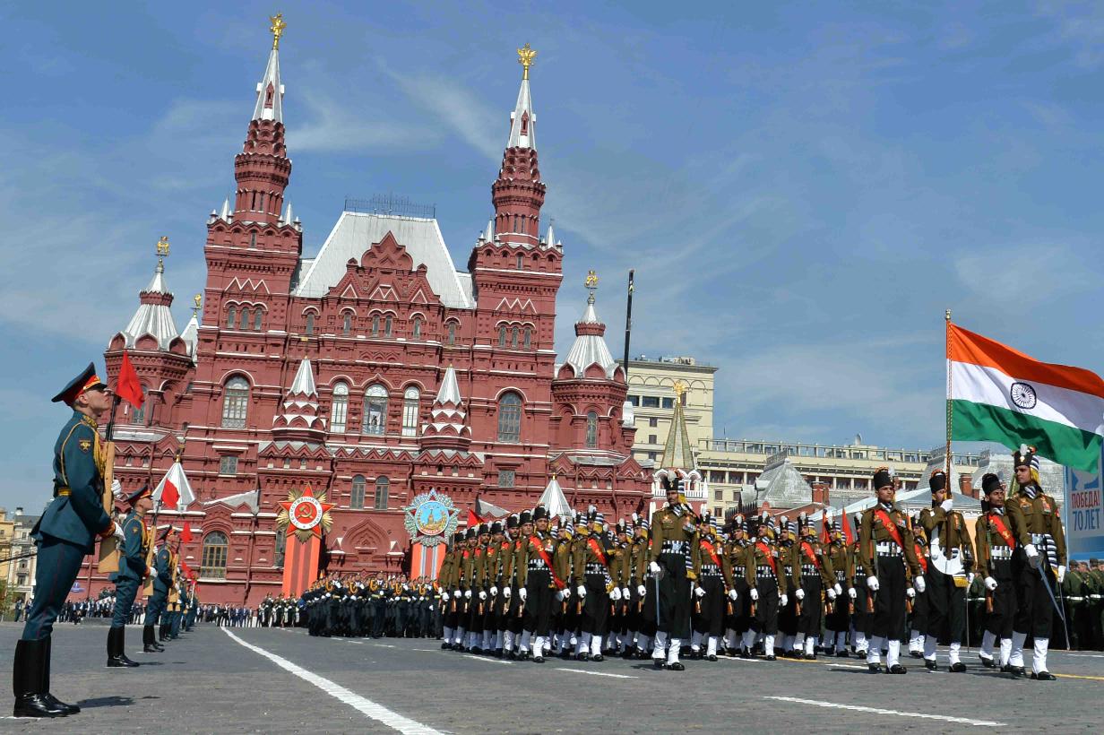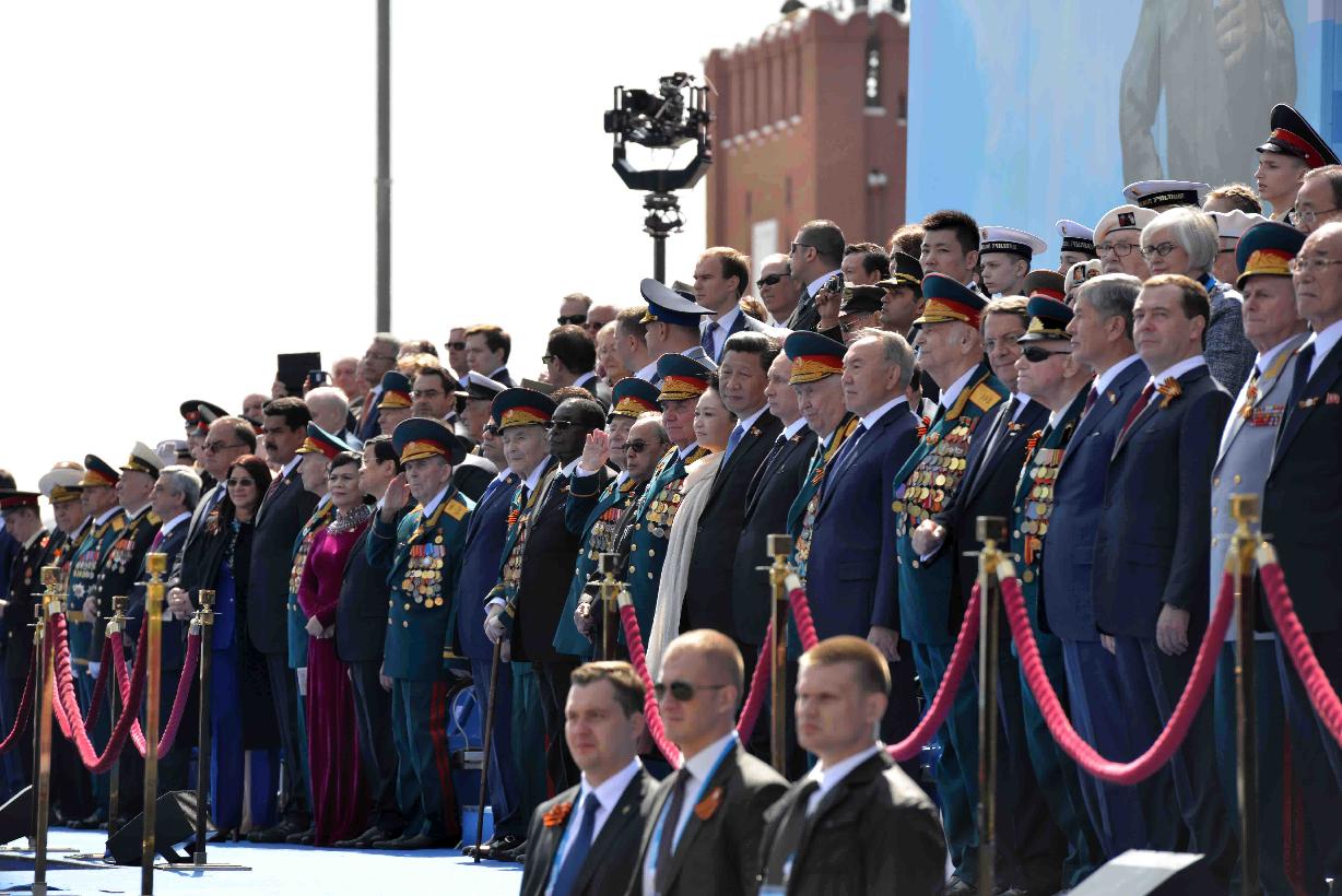 | Caption: | The President of India, Shri Pranab Mukherjee witnessing the Victory Day Commemoration along with the President of the Russian Federation, H.E. Mr. Vladimir V Putin and other Leaders, at Red Square, in Moscow, Russia on May 09, 2015. |