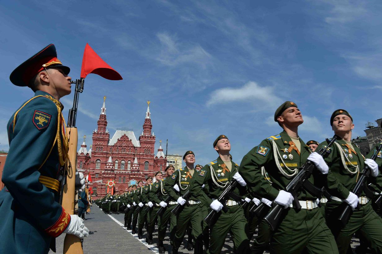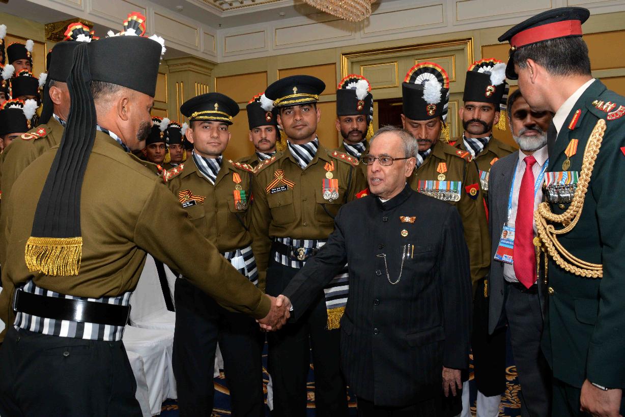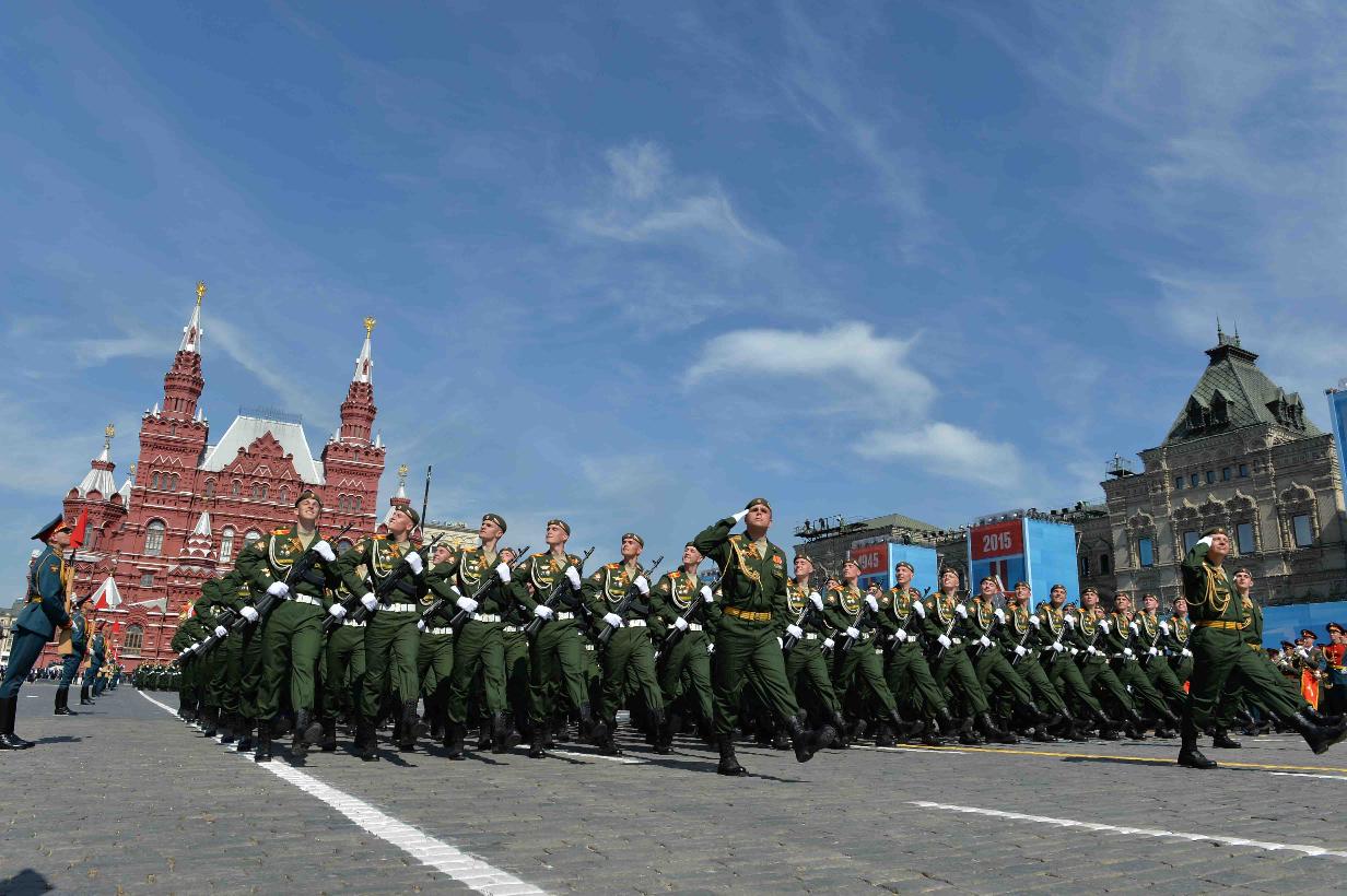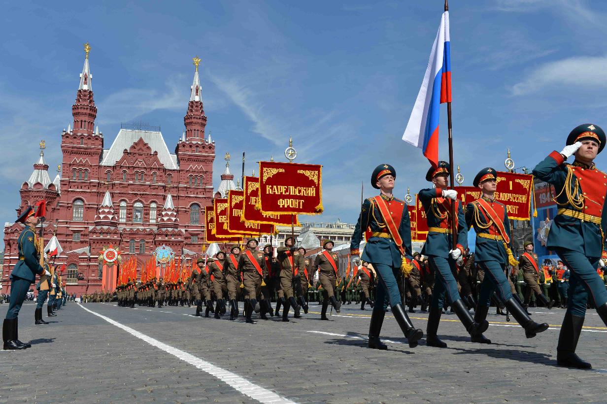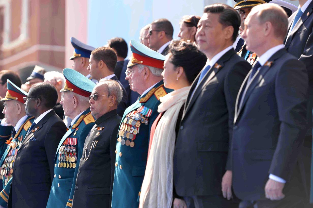 | Caption: | The President of India, Shri Pranab Mukherjee witnessing the Victory Day Commemoration along with the President of the Russian Federation, H.E. Mr. Vladimir V Putin and other Leaders, at Red Square, in Moscow, Russia on May 09, 2015. |