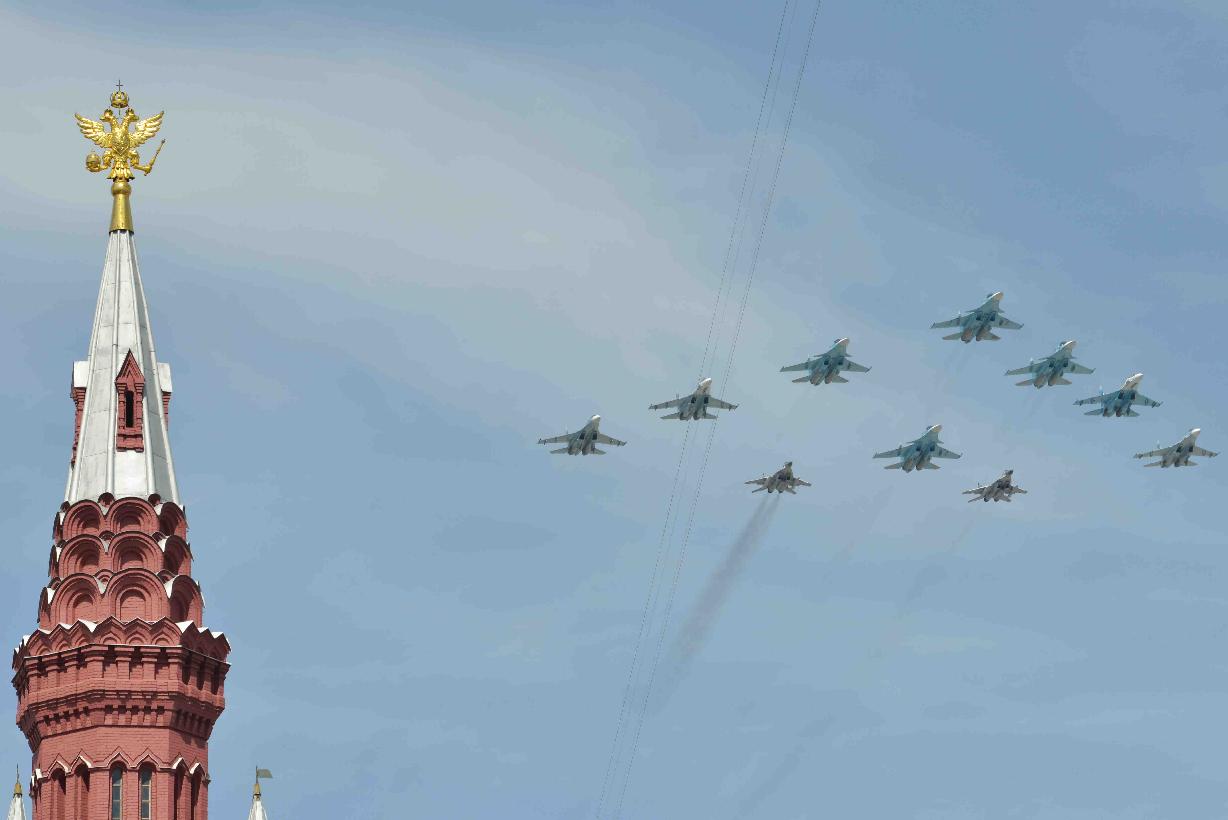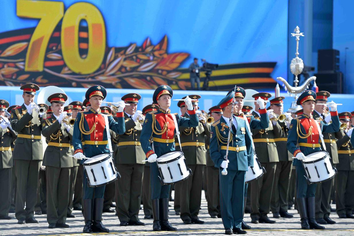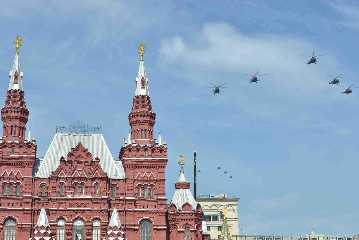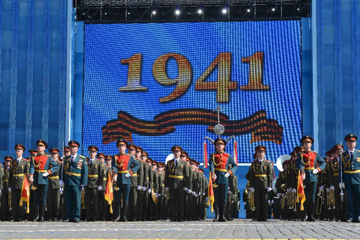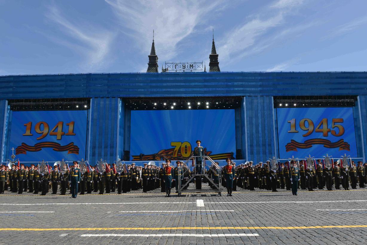 | Caption: | The President of India, Shri Pranab Mukherjee witnessing the Victory Day Commemoration along with the President of the Russian Federation, H.E. Mr. Vladimir V Putin and other Leaders, at Red Square, in Moscow, Russia on May 09, 2015. |