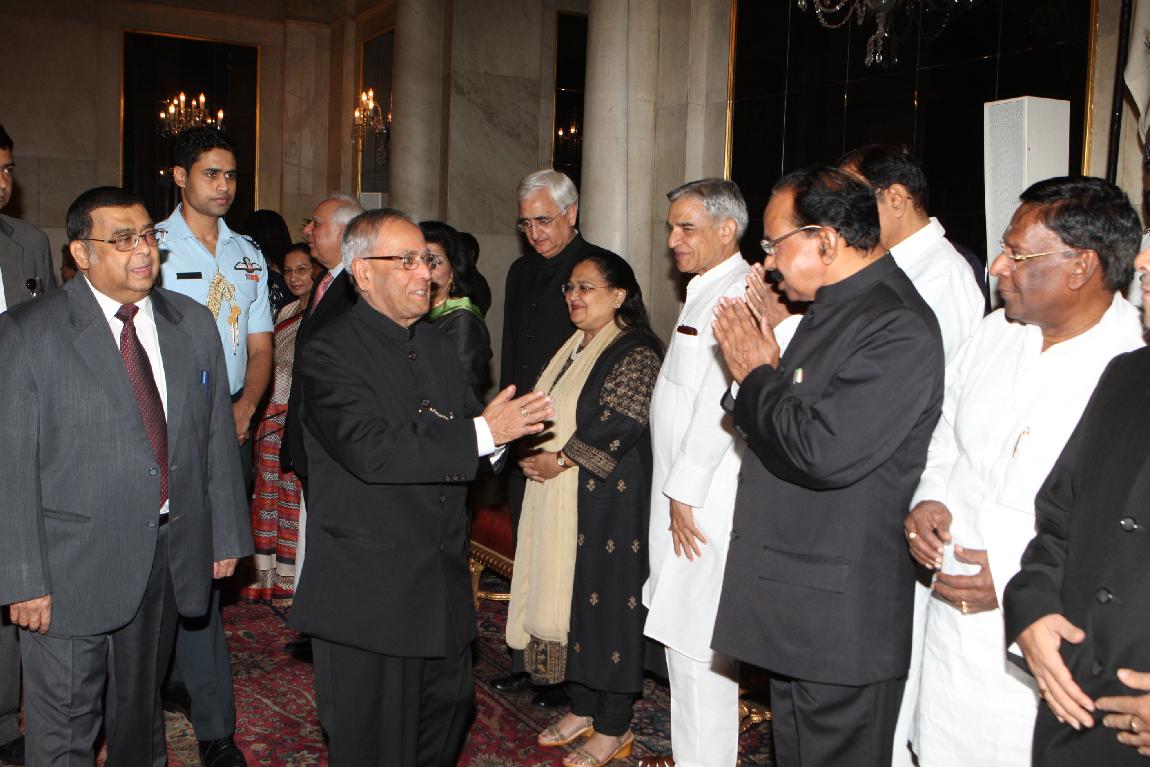 | Caption: | The President of India, Shri Pranab Mukherjee Hosting Dinner for Incoming & Outgoing of The Chief Justice of India on Sep 29, 2012 |