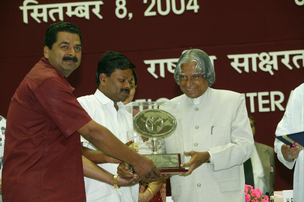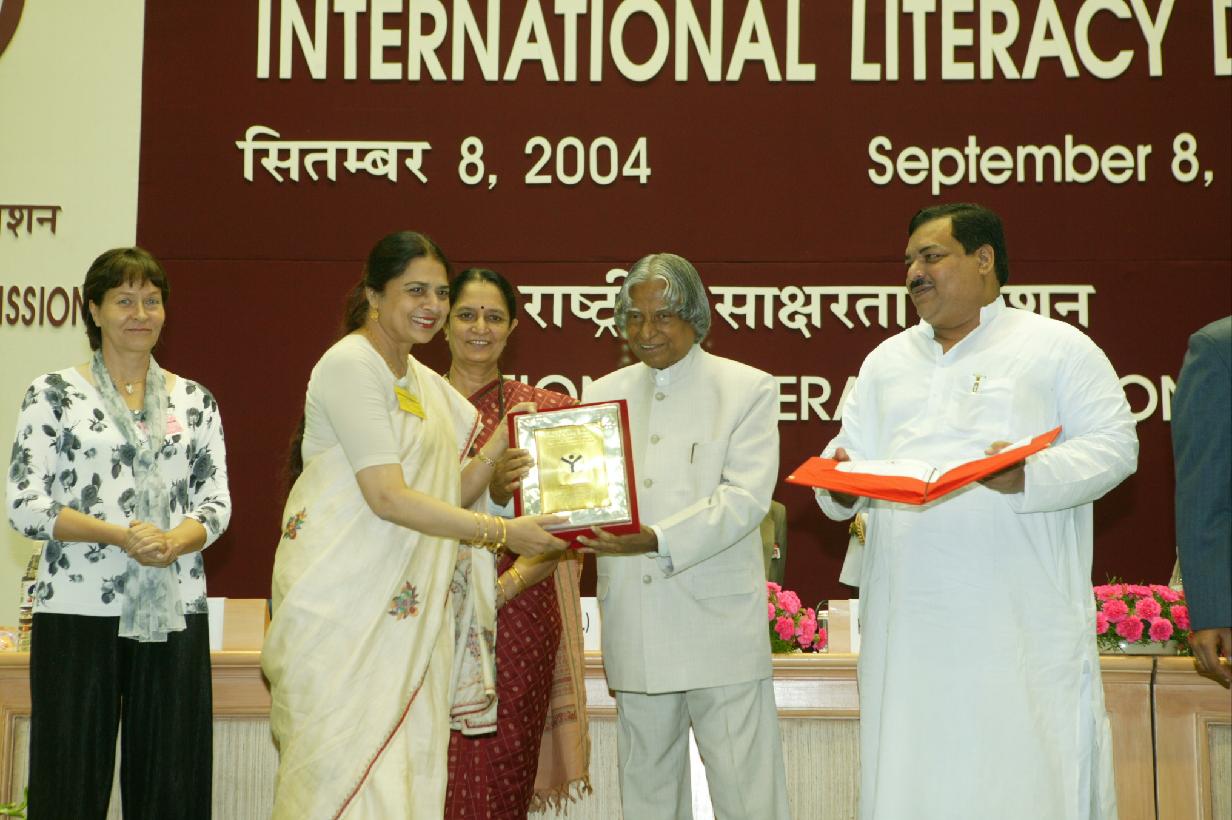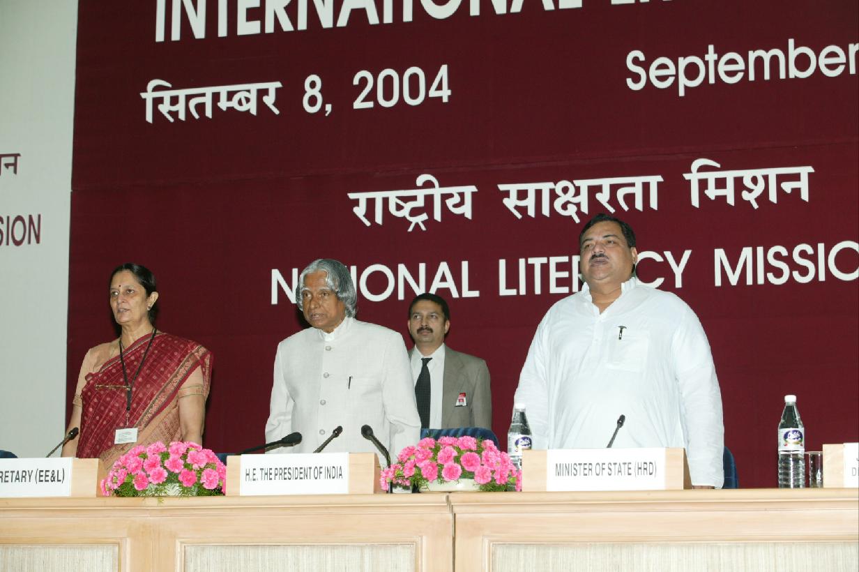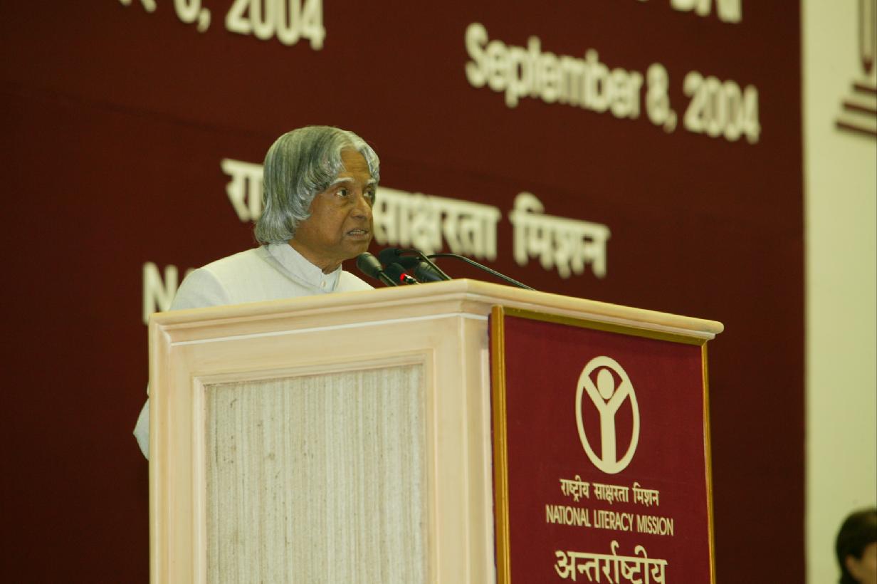 | Caption: | The President of India, Dr A P J Abdul Kalam participating in the 38th International Literacy Day at Vigyan Bhavan in New Delhi on Sep 08, 2004 |