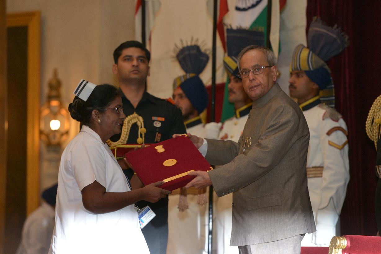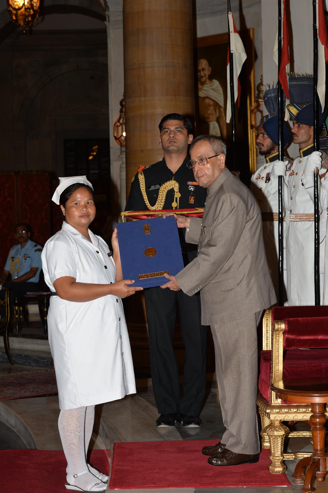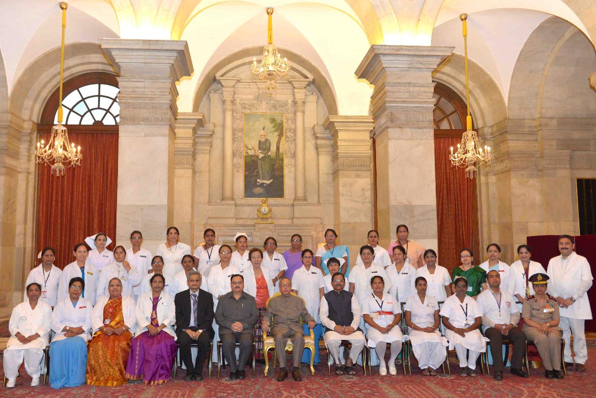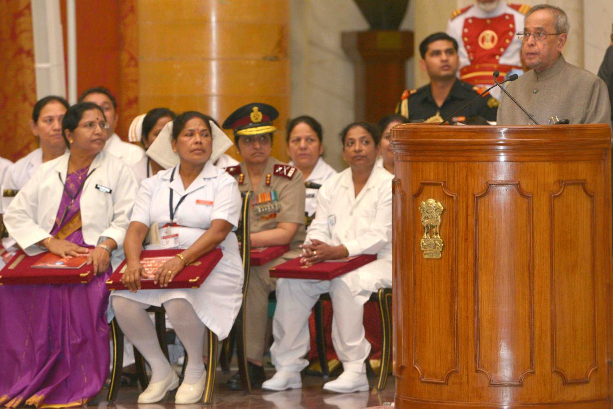 | Caption: | The President of India, Shri Pranab Mukherjee presenting the National Florence Nightingale Awards for the Nursing Personnel, on the occasion of International Nurses Day, at Rashtrapati Bhavan, in New Delhi on May 12, 2015. |