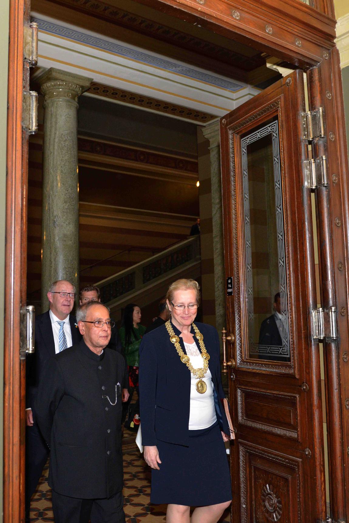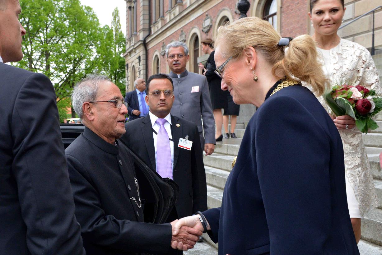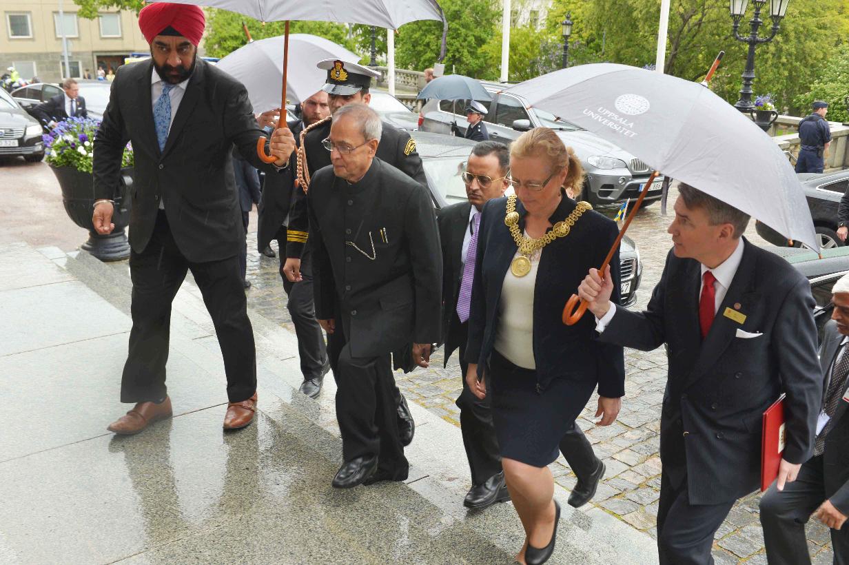 | Caption: | The President of India, Shri Pranab Mukherjee visiting the Uppsala University, during his State visit of Sweden, in Stockholm on June 02, 2015. He was escorted by Ms. Eva Akesson, Vice Chancellor of Uppsala University and Ms. Margot Wallstrom, Minister for Foreign Affairs, Sweden. |