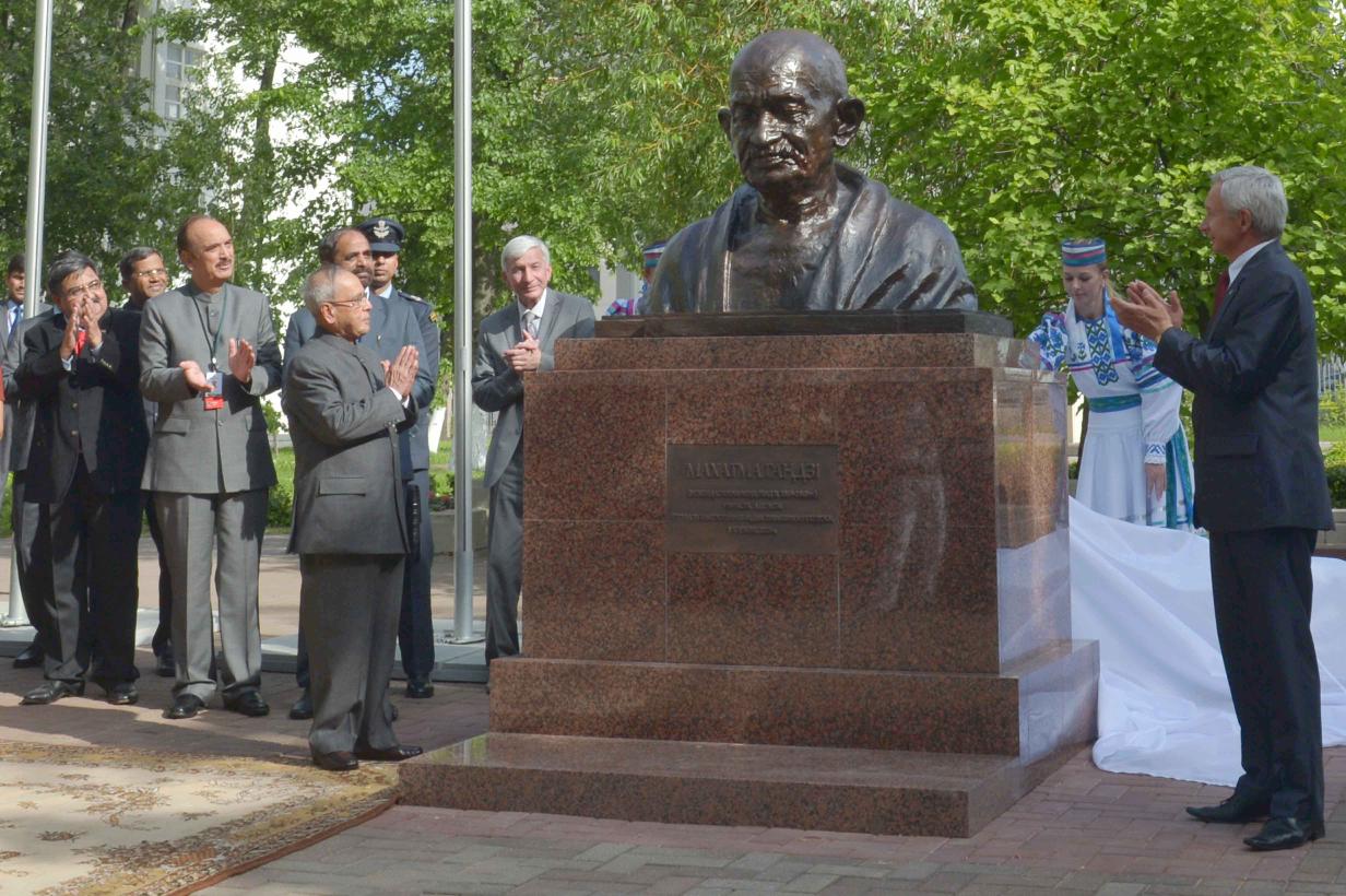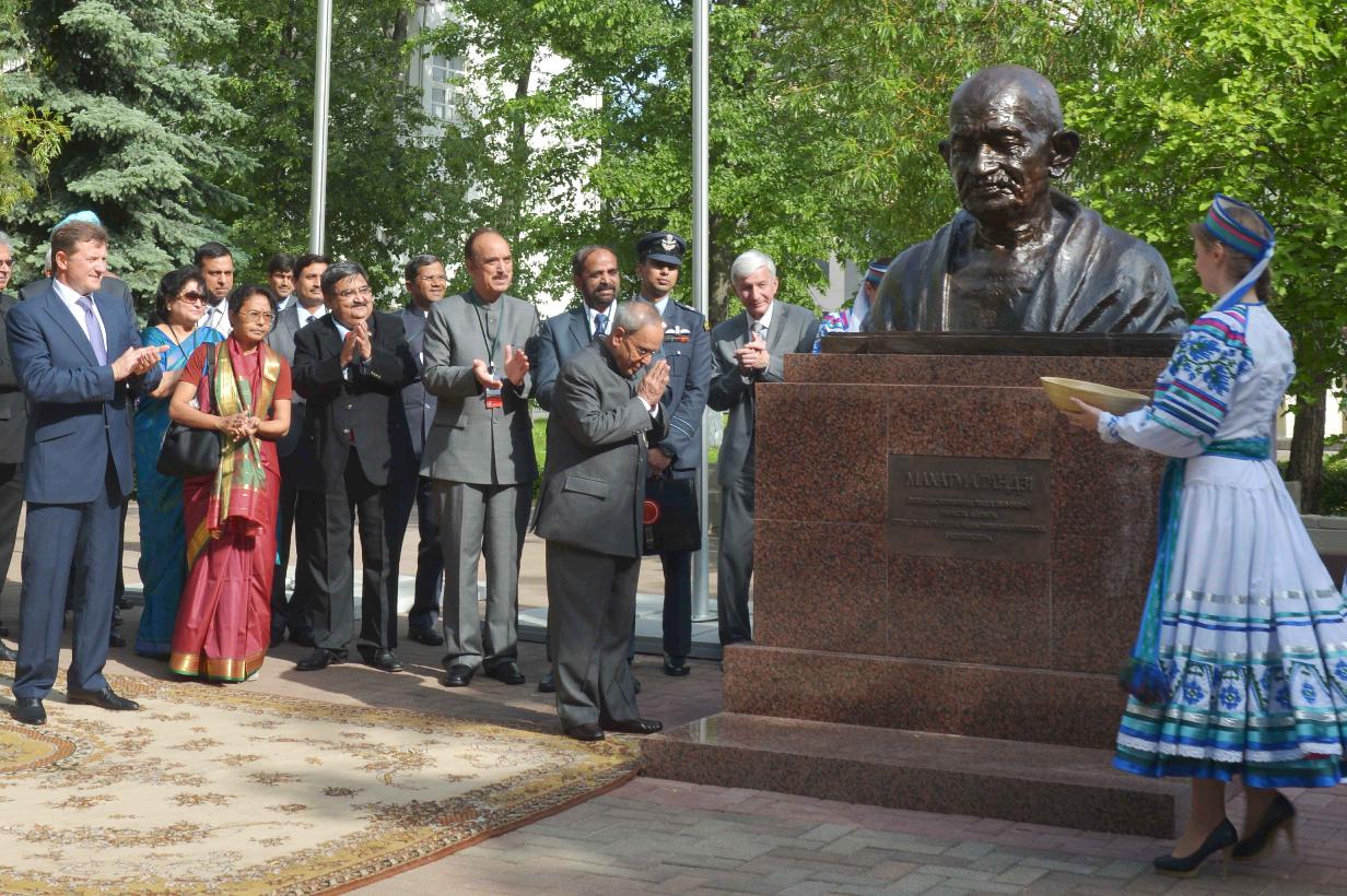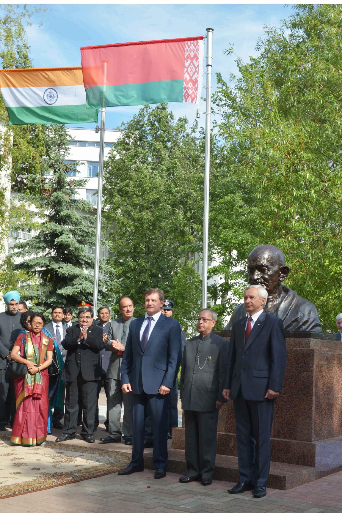 | Caption: | The President of India, Shri Pranab Mukherjee unveiled a bust of Mahatma Gandi, at Belarusian State University, at Minsk, in Belarus on June 03, 2015. The Minister of Education of Republic of Belarus, Mr. Zhuravkov Mikhail and the Rector of Belarusian State University, Prof. Sergey V. Ablameyko also present on the occasion. |