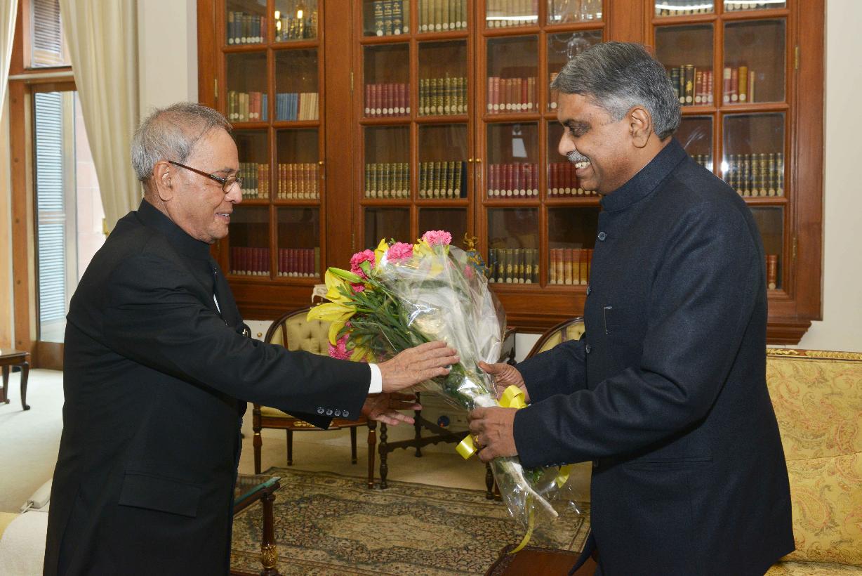 | Caption: | The Cabinet Secretary, Shri P.K. Sinha meeting the President of India, Shri Pranab Mukherjee, at Rashtrapati Bhavan, in New Delhi on June 16, 2015. |