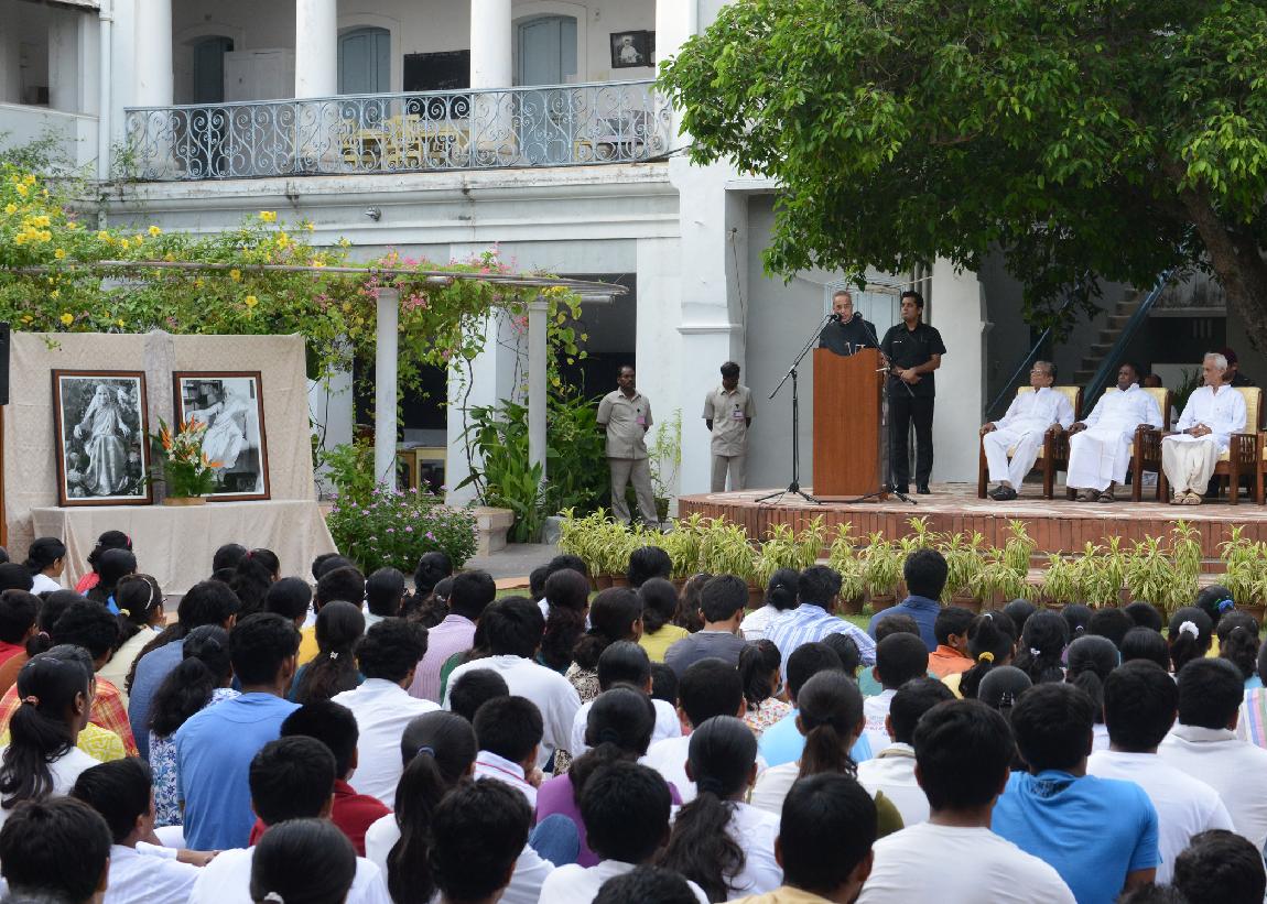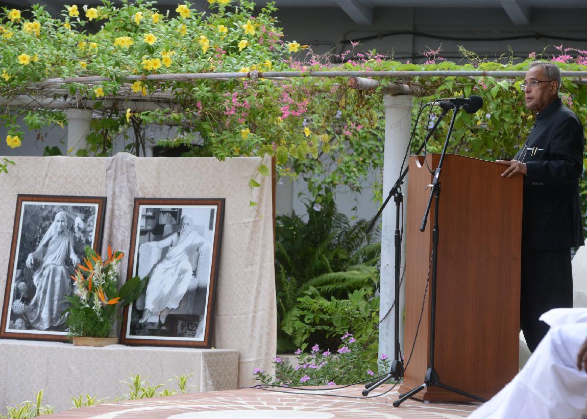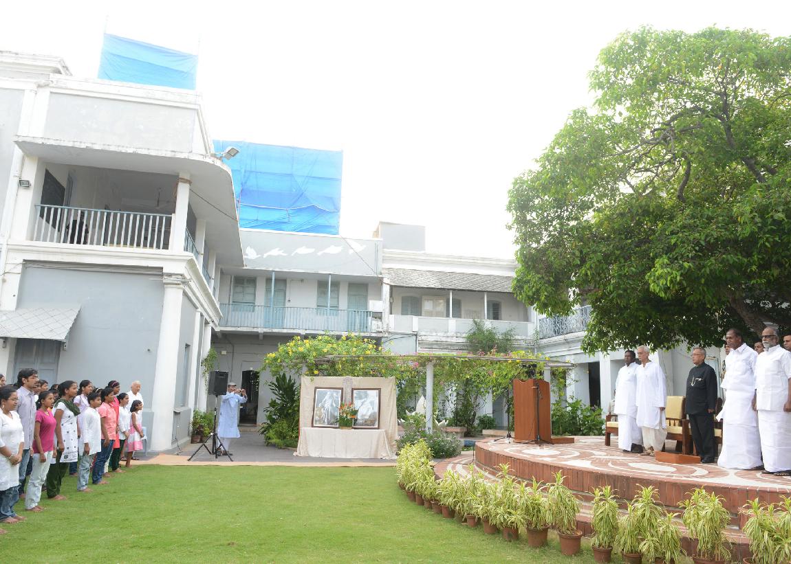 | Caption: | The President of India, Shri Pranab Mukherjee during the visit to Sri Aurobindo Ashram and interacting with the students of Sri Aurobindo International Centre of Education at Sri Aurobindo Ashram at Puducherry on Sep 25, 2013 |