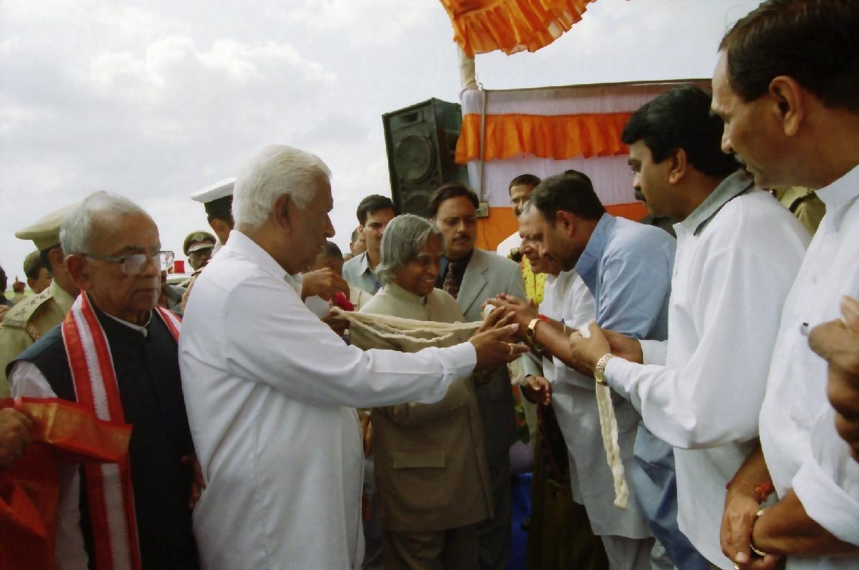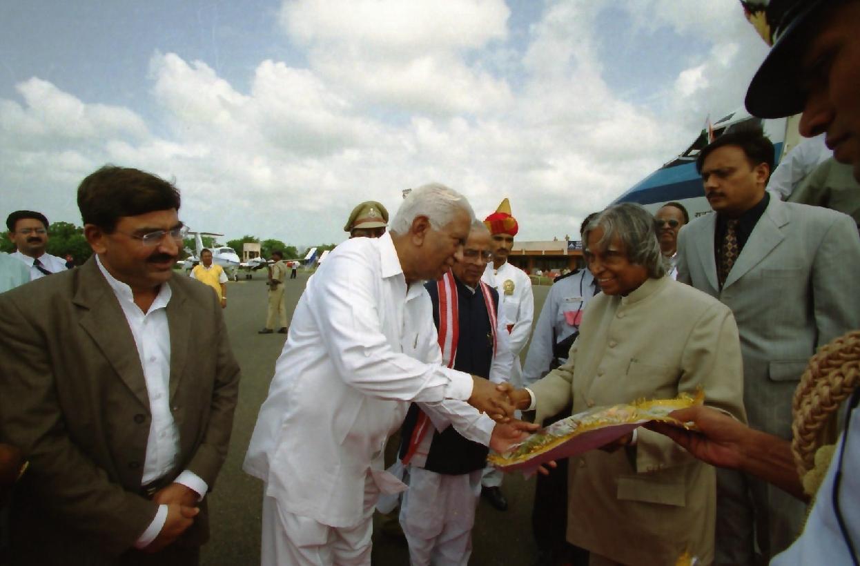 The President of India, Dr A P J Abdul Kalam arriving at Rajkot Airport in Gujarat on Sep 05, 2003