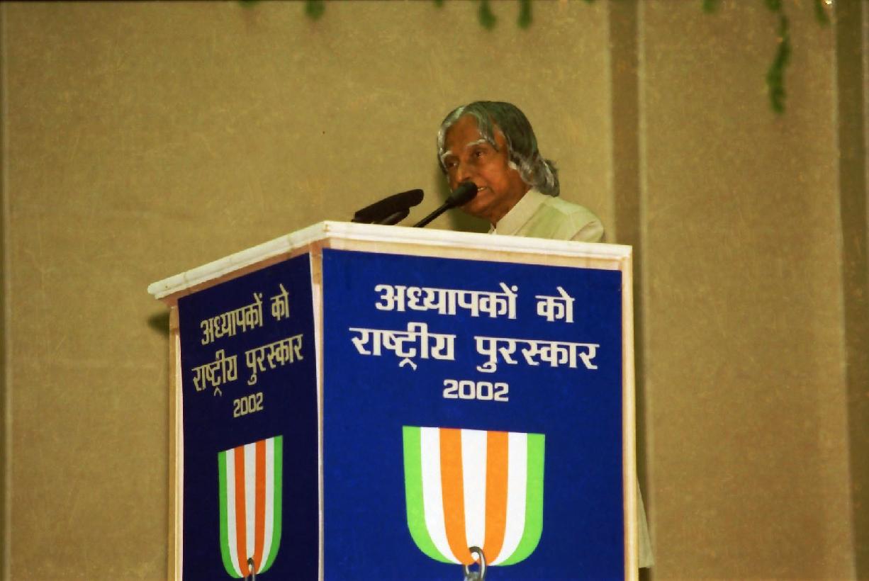 | Caption: | The President of India, Dr A P J Abdul Kalam presenting the National Awards to Teachers at Vigyan Bhavan in New Delhi on Sep 05, 2003 |
