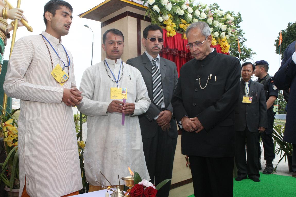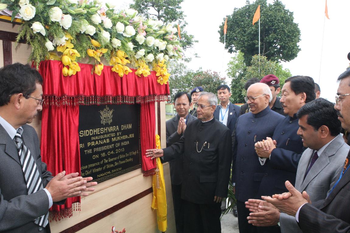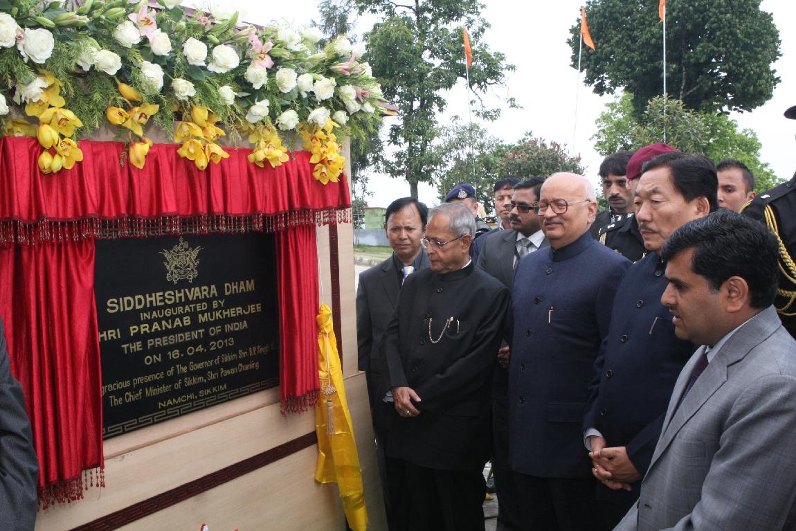| Caption: | The President of India, Shri Pranab Mukherjee at the Inauguration & Dedication to the Nation of Siddeshwara Dham Solophok Namchi South Sikkim on April 16, 2013 |