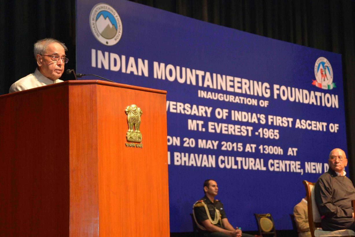 | Caption: | The President of India, Shri Pranab Mukherjee inaugurating the 50th Anniversary of Indian s First Historic Climb of Mt. Everest in 1965, organized by the Indian Mountaineering Foundation, at RB Cultural Centre, in New Delhi on May 20, 2015. |