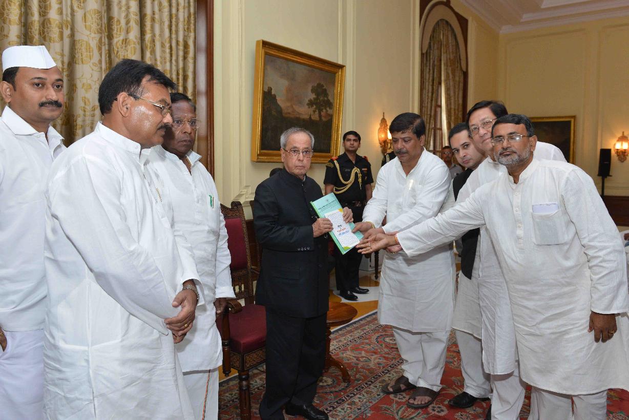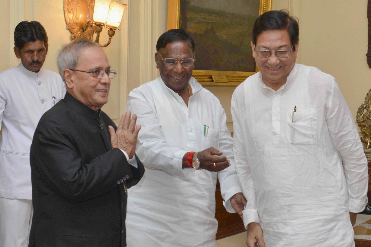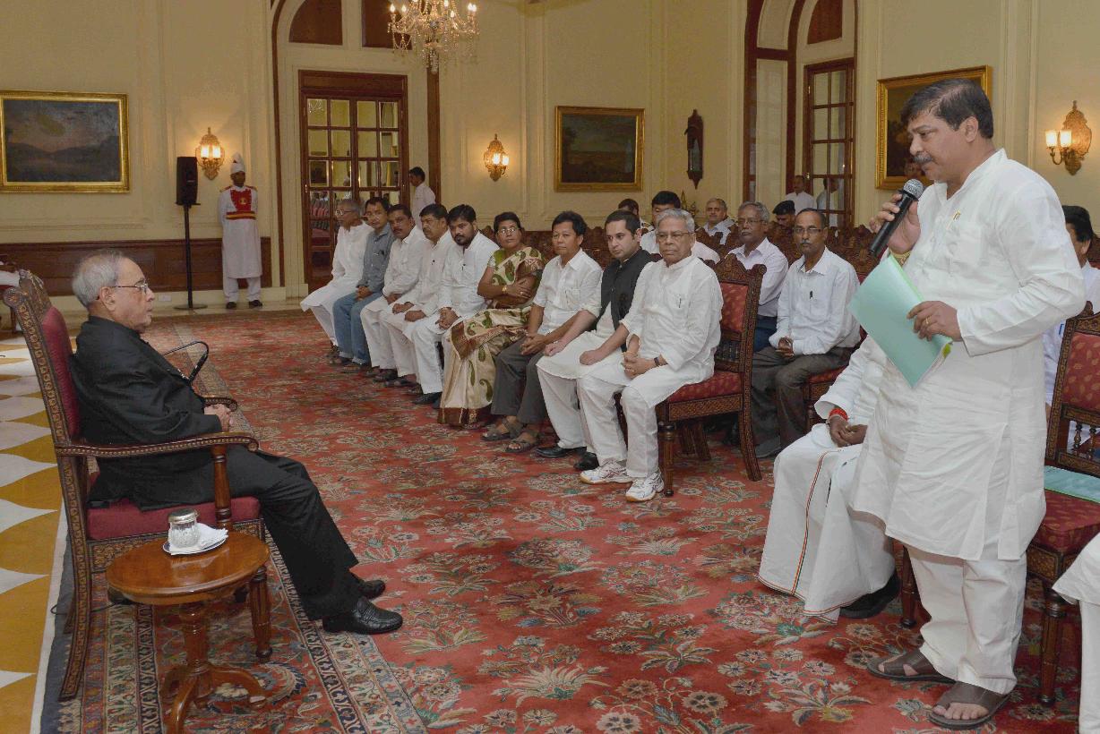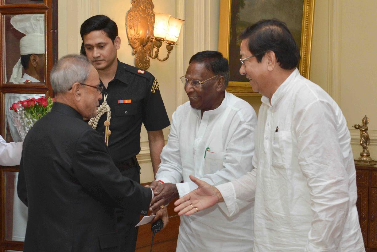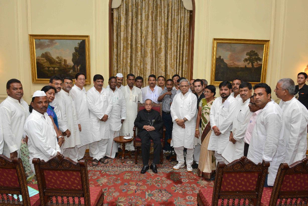| Caption: | The former Union Minister, Shri V. Narayanasamy alongwith a delegation of Congress MLAs and senior leaders from Tripura Pradesh Congress Committee meeting with the President of India, Shri Pranab Mukherjee, at Rashtrapati Bhavan, in New Delhi on June 16, 2015. |