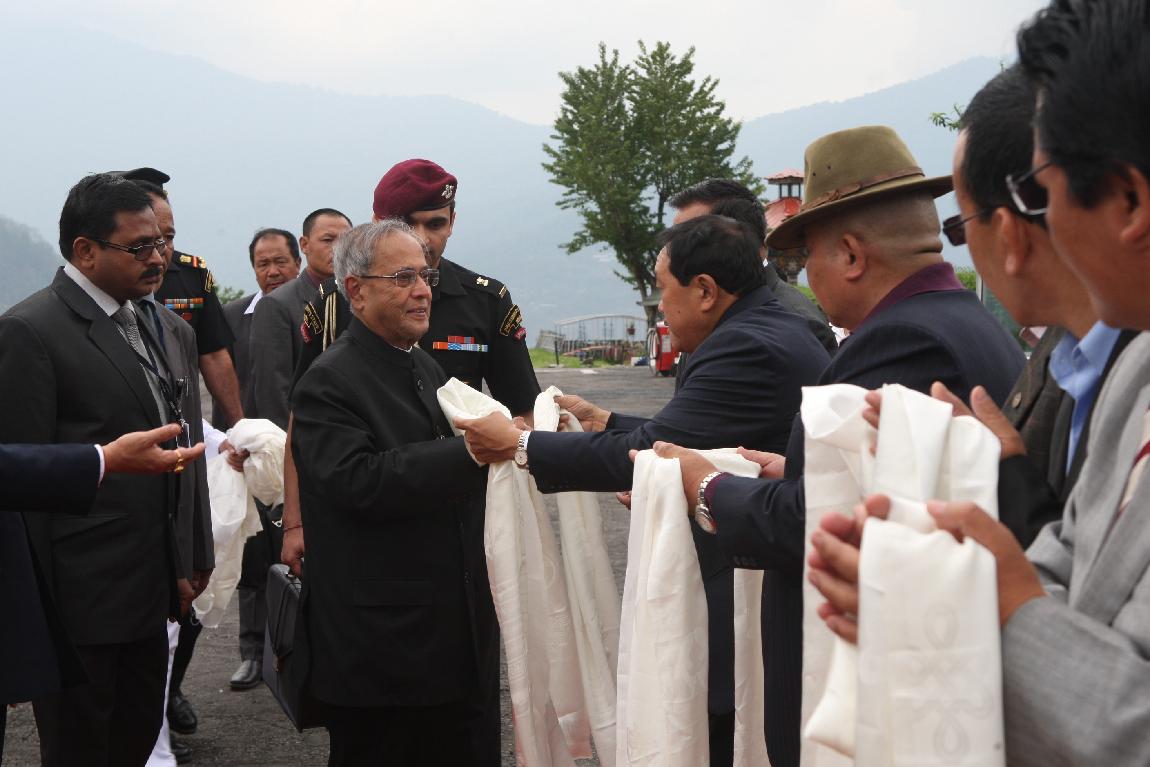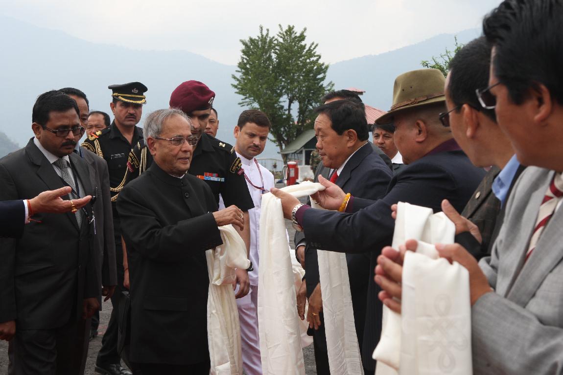 The President of India, Shri Pranab Mukherjee Arrival at Libing Helipad Gangtok on April 16, 2013