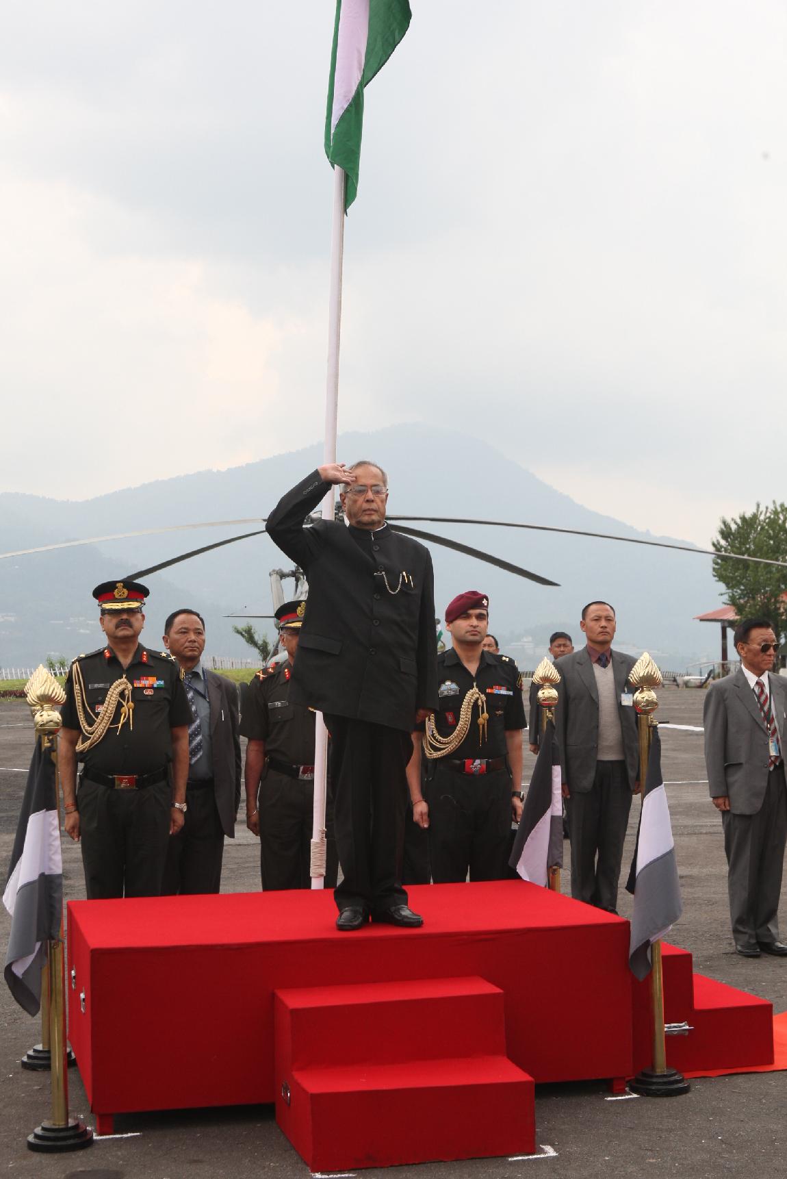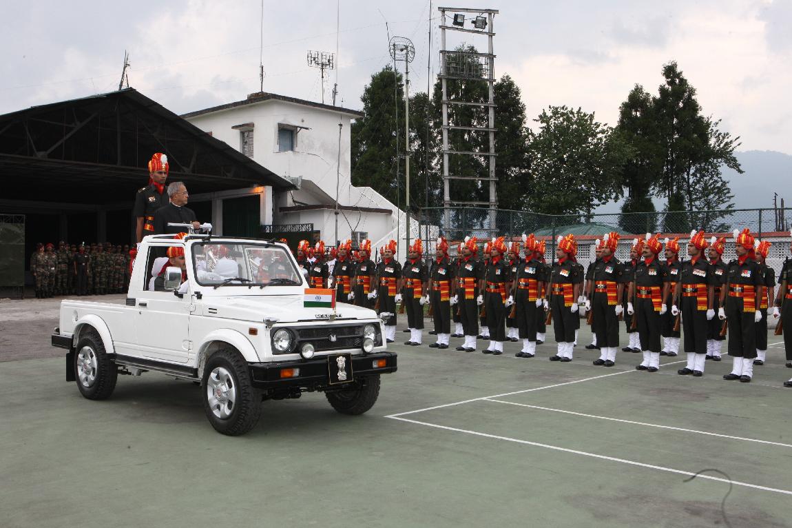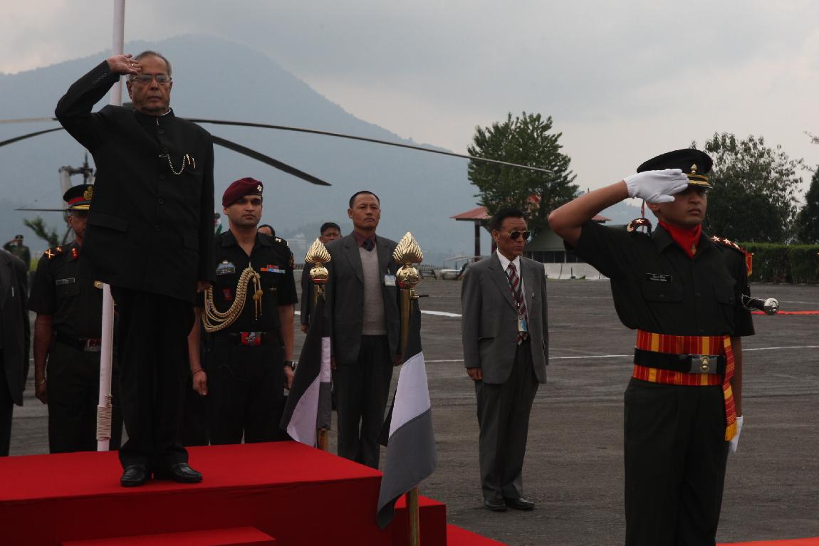 | Caption: | The President of India, Shri Pranab Mukherjee Inspecting Guard of Honor & Reception at Gangtok Helipad on April 16, 2013 |
